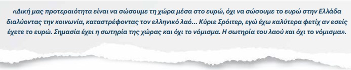 «…τα λεφτά τα βάζει ο Σόιμπλε. Και όποιος βάζει τα λεφτά θέτει και τους όρους του». (σελ. 211)