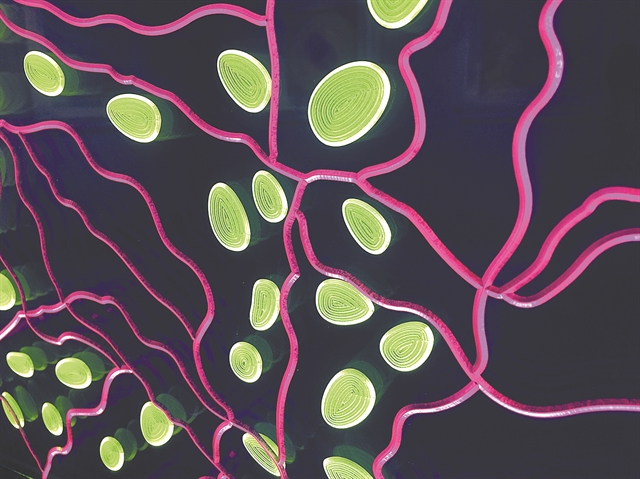 Εν αρχή ην (είναι και θα είναι, εκτός και αν η τεχνολογία καταργήσει κάποια ημέρα την ίδια την έννοια των όντων, τουλάχιστον όπως τη γνωρίζουμε) το κύτταρο. Αυτή η μικροσκοπική μονάδα με τον θαυμαστό σχεδιασμό, με την τεράστια προσαρμοστικότητα, με τις ασύλληπτες πολλές φορές λειτουργίες που αποτελεί τον πυλώνα της ζωής – από τα βακτήρια έως τα φυτά και τα ζώα, συμπεριλαμβανομένου του ανθρώπου. Εν αρχή όμως ην (και επίσης είναι και θα είναι) και το φως, η ανεξάντλητη πηγή που ώθησε τη ζωή να αναδυθεί από την άβυσσο στην επιφάνεια και την κάνει να συνεχίζει να υπάρχει. Αυτά τα δύο «προαπαιτούμενα» του κόσμου μας «παντρεύονται» σε μια εντυπωσιακή εικαστική έκθεση της διεθνούς φήμης ελληνίδας εικαστικού Αντωνίας Παπατζανάκη με τίτλο «Cellular», στην οποία γίνεται και ένας άλλος σημαντικός «γάμος». Πρόκειται για εκείνον της Τέχνης με τη Βιολογία, την επιστήμη που εξετάζει τη φύση και το φαινόμενο της ζωής στην πολλαπλότητά του. Πού λαμβάνουν χώρα αυτά τα τόσο ενδιαφέροντα «παντρέματα»; Στο Μουσείο Ηρακλειδών (Ηρακλειδών 16, Αθήνα). Οσο για τους καλεσμένους, είστε όλοι σας, με ιδιαίτερη έμφαση στους μαθητές, καθώς η έκθεση θα πλαισιώνεται εκτός από επιστημονικές διαλέξεις και με προγράμματα για σχολεία. «Το Βήμα» βρέθηκε στα άκρως επιτυχημένα εγκαίνια της έκθεσης «Cellular» που έγιναν πριν από μερικές ημέρες, συγκεκριμένα στις 16 Απριλίου, και είδε από κοντά πώς ο «διάλογος» επιστήμης και τέχνης μπορεί κυριολεκτικώς να φωτίσει – αφού ορισμένα από τα θεαματικά έργα λούζονται στο φως – και τελικώς να μας διαφωτίσει σχετικά με την ύπαρξή μας αλλά και αυτή των υπόλοιπων οργανισμών του πλανήτη μας τους οποίους συχνά δεν σεβόμαστε ενώ θα έπρεπε να γνωρίζουμε ότι αποτελούν αναπόσπαστα στοιχεία του «καμβά» και της δικής μας ζωής.