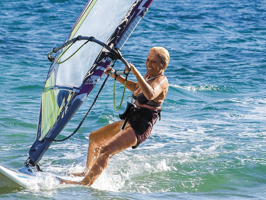 Ενα ταξίδι μαζί του και με τα παιδιά στο νησί Γκραν Κανάρια ήταν η αφορμή να ξεκινήσει, στα 40 της, το windserfing. «Δυο μέρες πριν φύγουμε βαριόμουν. Και βλέπω ξαφνικά κάποιον στο βάθος να κάνει windserfing. Σκέφτηκα πως αυτό είναι για μένα. Πήγα σε έναν Γερμανό που νοίκιαζε. Ηξερα μεν να κάνω κανό όρθια με κουπί, αλλά windserfing έβλεπα για πρώτη φορά. Στην αρχή φοβήθηκα, αλλά έκανα κάποιες κινήσεις, δεν ξέρω πώς ακριβώς, πάντως το γύρισα». Αυτό ήταν το ξεκίνημα της πορείας της ως το βιβλίο Guinness.