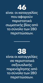 Μάλιστα, σχεδόν το 40% των υποθέσεων αφορά βία ή παρενόχληση από τον ίδιο τον εργοδότη, ενώ στο 60% ο καταγγελλόμενος είναι άλλος εργαζόμενος, προϊστάμενος ή πρόσωπο με θέση ευθύνης.