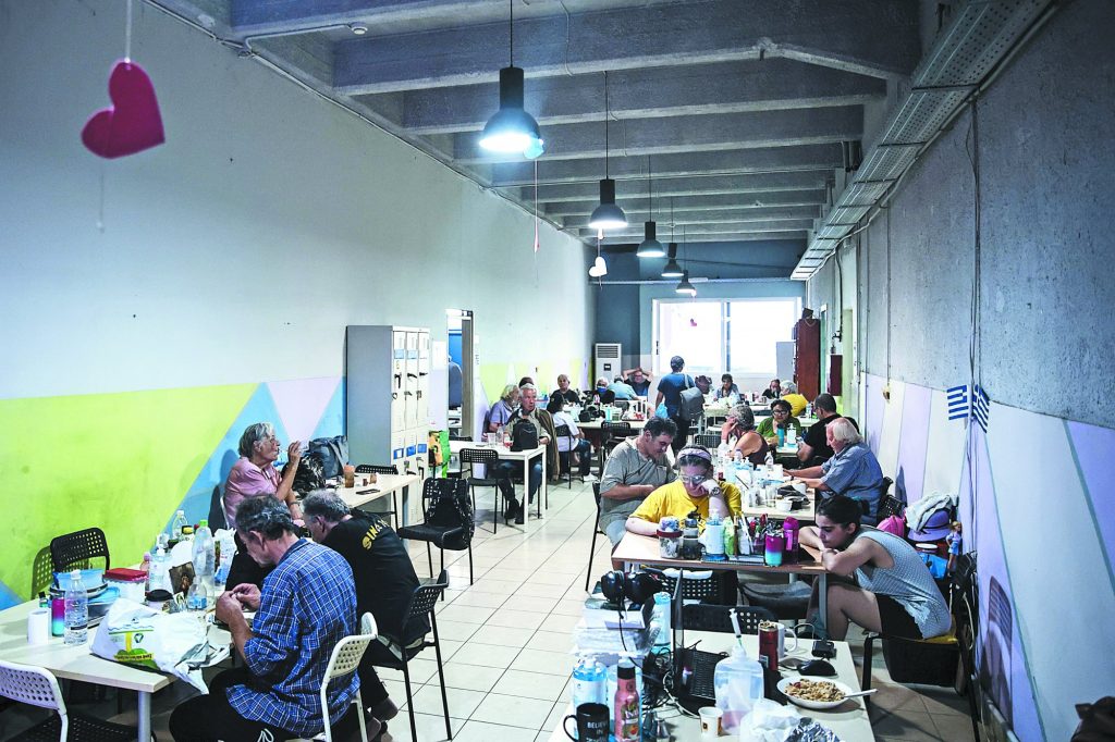 Ωστόσο, υπάρχουν και οι συμπολίτες μας που δεν έχουν άλλη επιλογή από το να βρουν καταφύγιο σε τέτοιους χώρους καθώς δεν έχουν πού την κεφαλήν κλίναι. Οπως ο 79χρονος Αναστάσιος Λυμπερόπουλους, που αυτές τις ημέρες των υψηλών θερμοκρασιών βρέθηκε στη δομή φιλοξενίας αστέγων «Υπνωτήριο Πειραιάς Λιμάνι Αλληλεγγύης» του Ομίλου UNESCO Πειραιώς και Νήσων που, σε συνεργασία με τον Δήμο Πειραιά, λειτουργεί ως κλιματιζόμενος χώρος σε 24ωρη βάση. Αστεγος και καρκινοπαθής, περνάει την ώρα βλέποντας τηλεόραση, μακριά από τα καυτά τσιμέντα της πόλης: «Βρίσκομαι εδώ την περίοδο του καύσωνα, καθώς ατύχησα στη ζωή μου. Πού να κάτσω έξω με τέτοια ζέστη; Είμαι και στις ευπαθείς ομάδες λόγω καρκίνου. Ακόμα και σε μια γωνιά να μείνω με σκιά, έρχεται και με χτυπάει ο καυτός αέρας και δεν αντέχω. Στη δομή κάνω το μπάνιο μου, τρώω το φαγητό μου, βλέπω την τηλεόρασή μου στη δροσιά και περνάει η ώρα. Στον δρόμο το μόνο που θα έβλεπα θα ήταν κόσμο να περνάει από δίπλα μου και να φεύγει».