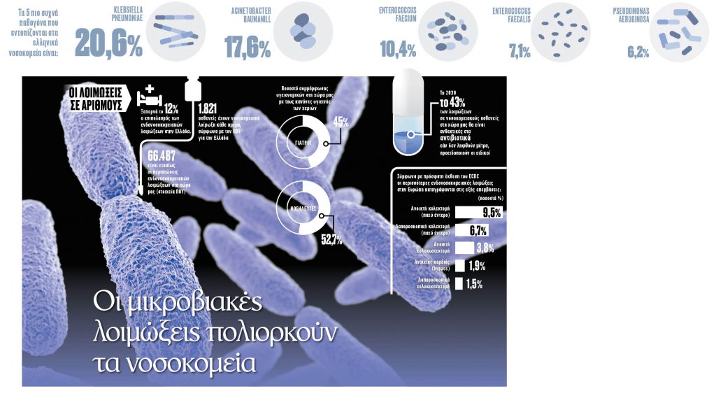 Ειδικές επιτροπές σε όλα τα νοσοκομεία (δημόσια και ιδιωτικά) αλλά και στις λοιπές υγειονομικές δομές, που θα ελέγχουν μεταξύ άλλων την ορθή χορήγηση αντιβιοτικών στους ασθενείς, θα επιτηρούν τις βακτηριαιμίες και τη συμμόρφωση των υγειονομικών στους κανόνες πρόληψης των ενδονοσοκομειακών λοιμώξεων αλλά και θα καταγράφουν τον ετήσιο αντιγριπικό εμβολιασμό ή άλλων εμβολίων των επαγγελματιών υγείας, προβλέπει μεταξύ άλλων πολυαναμενόμενη υπουργική απόφαση για το θέμα. Στην έκδοσή της μπήκε μια αναγκαστική… άνω τελεία, εξαιτίας των γραφειοκρατικών κολλημάτων σε συνδυασμό με την παρατεταμένη προεκλογική περίοδο, εν τούτοις αναμένεται (όπως όλα δείχνουν) να περάσει όπως η «σκυτάλη» στον επόμενο υπουργό Υγείας, ώστε να τρέξει άμεσα ένα ολιστικό σχέδιο καταπολέμησης των ενδονοσοκομειακών λοιμώξεων.
