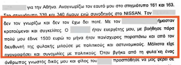 Ενας εξ αυτών λοιπόν μετά τη σύλληψή του ανέφερε στη διάρκεια της απολογίας του – αρνούμενος τις κατηγορίες που του αποδόθηκαν – ότι «με το θύμα ήμασταν στο ίδιο κελί (στις φυλακές Μαλανδρίνου)». Για να συνεχίσει λέγοντας ότι «με βοηθούσε πολύ, μου έδινε 1.500 ευρώ τον μήνα, ήταν πανίσχυρος, πάνω και από τον διευθυντή της φυλακής. Μιλούσε με πολιτικούς κι αστυνομικούς. Μάλιστα είχε ηχογραφήσει και συνομιλίες με πολιτικούς». Σημειώνεται ότι η συγκατοίκηση στο ίδιο κελί του κατηγορουμένου και του θύματος έχει επιβεβαιωθεί από τα αρχεία και τη χαρτογράφηση των κρατουμένων στις φυλακές Μαλανδρίνου.