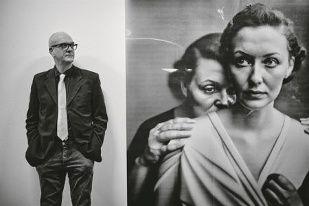 Ο γερμανός φωτογράφος Μπόρις Ελνταγκσεν δίπλα στο έργο του «Pseudomnesia: The Electrician» (Ψευδομνησία: Ο ηλεκτρολόγος), το οποίο δημιούργησε με τη βοήθεια της τεχνητής νοημοσύνης και του χάρισε το βραβείο Διεθνούς Φωτογραφίας της Sony
