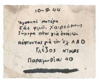 Το σημείωμα του Νίκου Γλέζου, λίγο πριν την εκτέλεσή του στις 10 Μαΐου 1944
