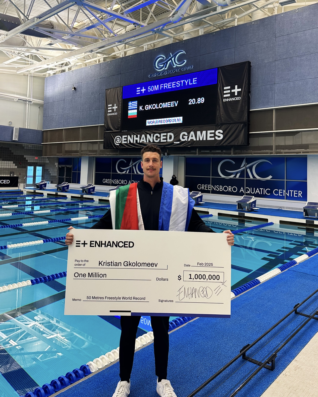 Θα επρόκειτο για ένα αναντίρρητα ουρανομήκες success story εάν δεν υπήρχε ένας καταλυτικός παράγοντας στην εξίσωση. Το ανδραγάθημα του Γκολομέεβ ήρθε λίγο καιρό μετά την ένταξή του στο ρόστερ των Enhanced Games, δηλαδή ενός αθλητικού project που ευαγγελίζεται επιδόσεις, κατάρριψη ρεκόρ και διεύρυνση των δυνατοτήτων του ανθρώπινου σώματος, επιτρέποντας σε όσους συμμετέχουν να χρησιμοποιούν απαγορευμένα από την Παγκόσμια Ομοσπονδία Αντιντόπινγκ σκευάσματα αλλά και οποιαδήποτε πρόσθετο, όπως επί παραδείγματι οι ολόσωμες κολυμβητικές φόρμες, που βοηθούν τους αθλητές να τρέχουν γρηγορότερα, να αγωνίζονται δυνατότερα και να φτάνουν ψηλότερα.
