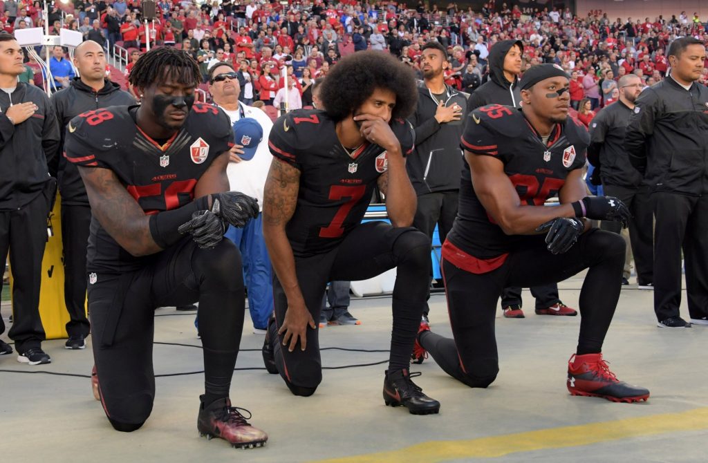 Το 2016 πριν από την έναρξη ενός αγώνα προετοιμασίας των Σαν Φρανσίσκο 49ers, ομάδας του NFL, ο Κόλιν Καπέρνικ αρνήθηκε να σταθεί όρθιος κατά την ανάκρουση του αμερικανικού εθνικού ύμνου και γονάτισε. Έκαν ε το ίδιο σε όλη τη διάρκεια του πρώτου γύρου της σεζόν και η κίνησή του αυτή έγινε σύμβολο κατά των φυλετικών διακρίσεων και της αστυνομικής βίας στην Αμερική, υιοθετήθηκε δε από πολλούς αθλητές σε όλον τον κόσμο.