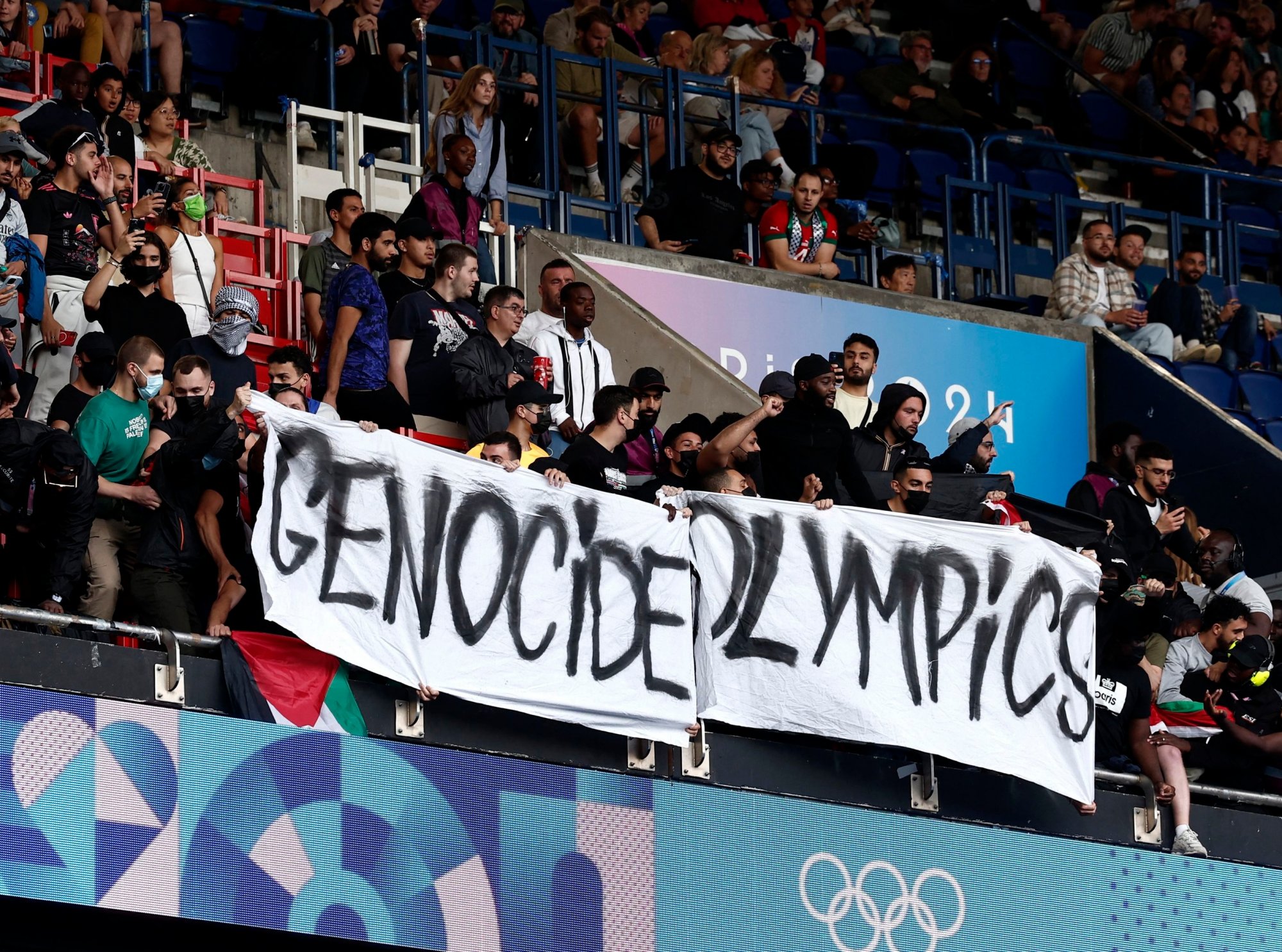 Η Παλαιστινιακή Ολυμπιακή Επιτροπή ζήτησε τον αποκλεισμό του Ισραήλ επικαλούμενη τη συνέχιση των ισραηλινών επιχειρήσεων και του μακελειού στη Γάζα, ενώ γάλλοι αριστεροί βουλευτές χαρακτήρισαν ανεπιθύμητους τους ισραηλινούς αθλητές. Η κυβέρνηση του Εμανουέλ Μακρόν κατέστησε σαφές ότι οι Ισραηλινοί είναι καλοδεχούμενοι στο Παρίσι, ενώ απέρριψε ως «ανεύθυνες και επικίνδυνες» τις αιτιάσεις της Αριστεράς.