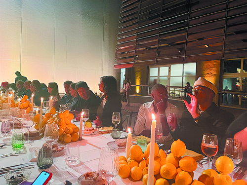 Στο αίθριο με τον «χαμηλό» αλλά ιδιαίτερα προσεγμένο φωτισμό υπήρχαν δύο τεράστια τραπέζια. Οι καλεσμένοι μετά την έκθεση του διεθνούς φήμης εικαστικού Ρικ Λόου επισκέφθηκαν τον όμορφο αυτόν χώρο του Μουσείου Μπενάκη στην Πειραιώς για ένα private dinner. (Η έκθεση του Λόου έγινε σε δύο χώρους, στην γκαλερί Gagosian στο Κολωνάκι και στο αγαπημένο Μουσείο.) Οικοδέσποινα η νεαρή, ταλαντούχα γκαλερίστα Χριστίνα Παπαδοπούλου της Gagosian.