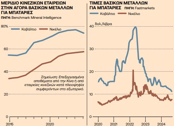 Η επιτυχία της Κίνας αναμόρφωσε τον κλάδο. Εφερε στην αγορά σημαντικά νέα αποθέματα και επιτάχυνε την πτώση των τιμών στο νικέλιο και το κοβάλτιο, εκτοπίζοντας τους δυτικούς ανταγωνιστές. Το ποσοστό των παγκόσμιων αποθεμάτων νικελίου που επεξεργάζονται εταιρείες στην Κίνα ή κινεζικές εταιρείες στο εξωτερικό αυξήθηκε από 34% το 2015 σε 58% φέτος, σύμφωνα με την Benchmark Mineral Intelligence.