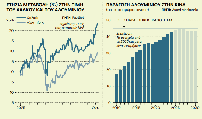 Το αλουμίνιο παρουσίαζε ως επί το πλείστον πλεόνασμα τις τελευταίες δύο δεκαετίες, καθώς η Κίνα – ο μεγαλύτερος παραγωγός και καταναλωτής του μετάλλου παγκοσμίως – αύξησε επιθετικά την παραγωγική της ικανότητα χρησιμοποιώντας φθηνή ενέργεια από την καύση άνθρακα. Αυτό συνέβαλε στη συγκράτηση των τιμών, ακόμη και όταν η ζήτηση αυξανόταν. Οι τιμές του αλουμινίου σημείωσαν άνοδο 44% περίπου στη διάρκεια αυτής της περιόδου, ενώ ο χαλκός αυξήθηκε πάνω από 160%.