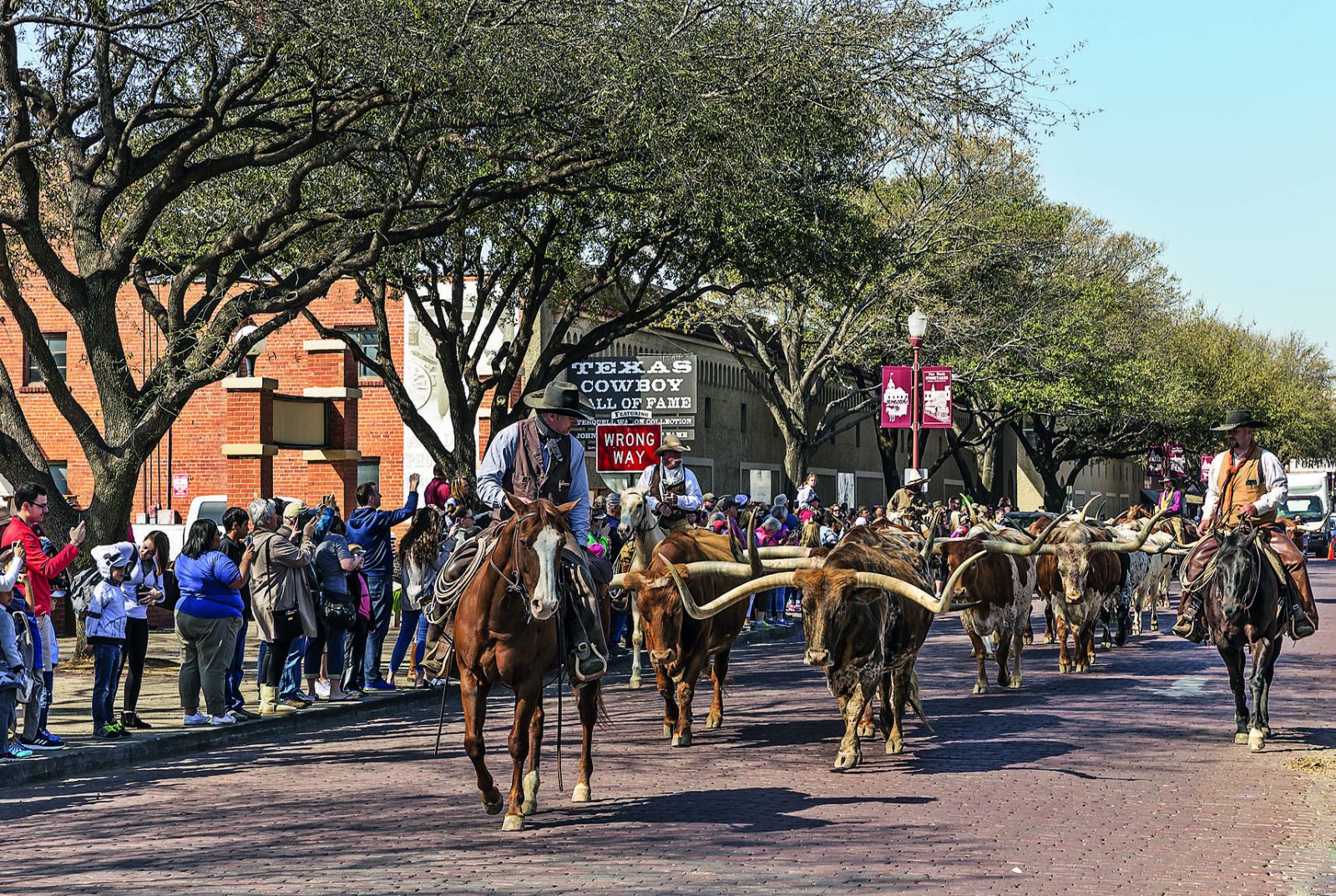 Αν υπάρχει ένας ιδανικός προορισμός για να αρχίσετε να καταλαβαίνετε τον α λα Φαρ Ουέστ τρόπο ζωής και να γνωρίσετε την «καουμπόικη εμπειρία» χωρίς να χρειαστεί να μείνετε σε ένα ράντσο, αυτός είναι το Φορτ Γουόρθ, μια πόλη λίγο έξω από το Ντάλας. Συγκεκριμένα, η περιοχή Fort Worth Stockyards National Historic District λειτουργεί ως ζωντανή αναπαράσταση της λαμπρής εποχής της κτηνοτροφίας, ένα θεματικό πάρκο (πρώην κτηνοτροφικός σταθμός διακίνησης ζώων) όπου η ιστορία της αμερικανικής Δύσης ξεδιπλώνεται κάθε μέρα μπροστά στα μάτια του επισκέπτη. Η καρδιά της εμπειρίας είναι το Fort Worth Herd, δηλαδή η καθημερινή μετακίνηση γνήσιων Texas Longhorn – ιστορικής φυλής βοοειδών συνώνυμης με την κτηνοτροφία και τις δυτικές Πολιτείες – κατά μήκος της East Exchange Avenue. Η παρέλαση γίνεται δύο φορές την ημέρα (στις 11.30 π.μ. και στις 4.00 μ.μ.), με τους καουμπόηδες και τις καουμπόισσες του Stockyards, ντυμένους με την παραδοσιακή φορεσιά τους, να οδηγούν το κοπάδι. Το θέαμα αναπαριστά τα cattle drives, τις ιστορικές πορείες προς τις αγορές του Βορρά. Οι επισκέπτες μπορούν να σταθούν στην περίφραξη, να παρακολουθήσουν το πέρασμα των επιβλητικών ζώων και να συνομιλήσουν με τους σύγχρονους αγελαδάρηδες.