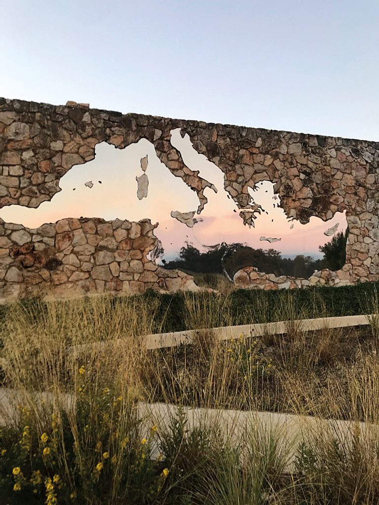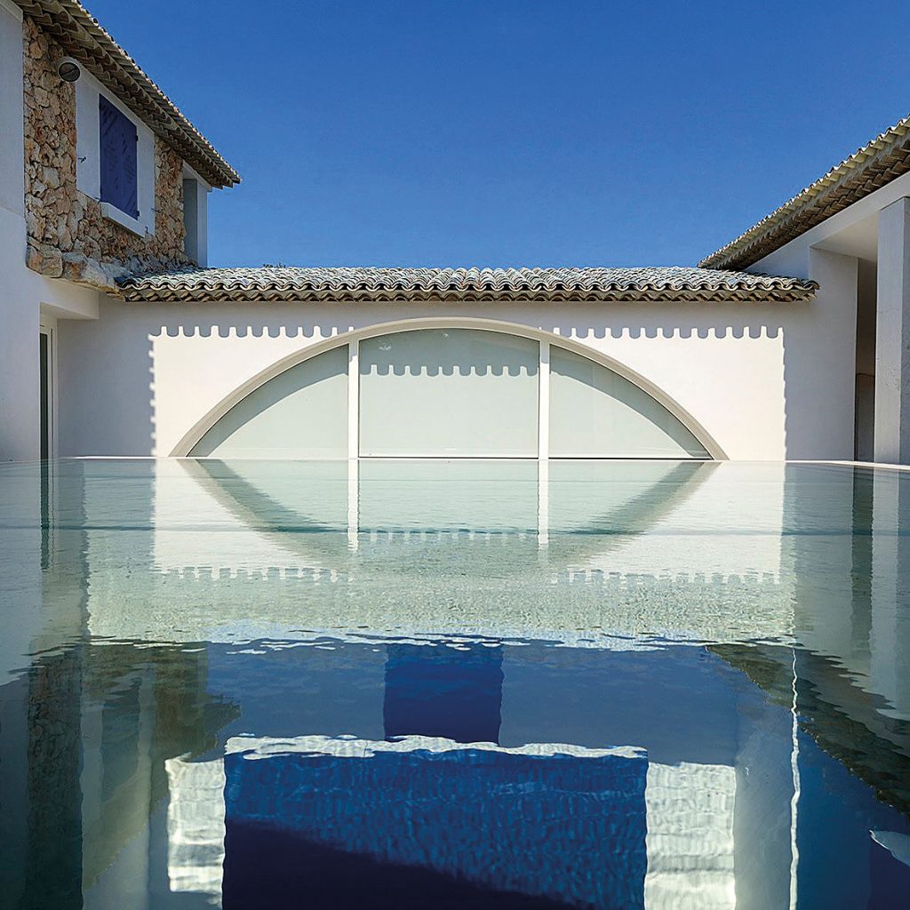 Στο εσωτερικό της Villa Carmignac οι χώροι διαρθρώνονται σε σχήμα σταυρού, ενώ μεγάλα ανοίγματα στους τοίχους προσφέρουν απρόσκοπτη θέα στους αμπελώνες που περιβάλλουν το κτίριο. Ο αρχιτέκτονας Λουί Μπενέκ (αν σας λέει κάτι το όνομά του, είναι εκείνος που είχε σχεδιάσει το πρόγραμμα ανάπλασης για τον Εθνικό Κήπο για τον πολιτιστικό οργανισμό ΝΕΟΝ πριν από δέκα χρόνια) ανέλαβε τον σχεδιασμό και τη διαμόρφωση των εξωτερικών χώρων και δημιούργησε έναν κήπο με στόχο να λειτουργεί ως «μη κήπος» (non garden), ένα μέρος όπου οι παρεμβάσεις είναι πολύ διακριτικές και αποφέρουν μια ισορροπία ανάμεσα στην αισθητική αναβάθμιση και στη διατήρηση της προϋπάρχουσας χλωρίδας.