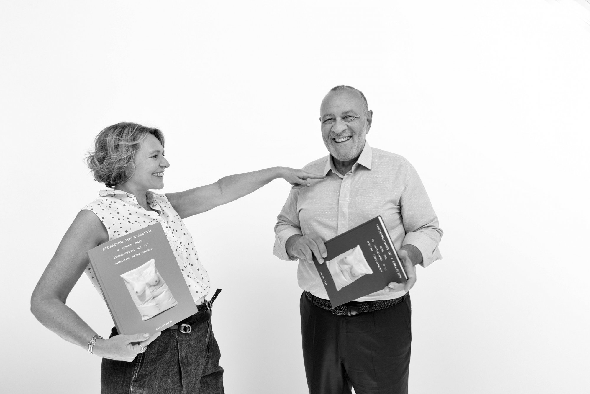 «Δεν ξέρω πώς και γιατί, αλλά πάντα έτρεχα στις εκθέσεις, ακόμα και όταν ήταν μικρά τα παιδιά μου, χωρίς να βάζω όρια στο είδος της τέχνης που έβλεπα. Είχα όμως μια έλξη προς τη σύγχρονη τέχνη, δίχως να καταλαβαίνω γιατί. Όταν γνώρισα τον Δημήτρη, σε μία από τις πρώτες εκθέσεις που επισκεφθήκαμε μαζί, σκέφτηκα: “Επιτέλους θα καταλάβω γιατί μου αρέσει η σύγχρονη τέχνη μια και είμαι με έναν άνθρωπο που τη γνωρίζει σε βάθος”. Μπαίνοντας στον χώρο είδα ένα πεντάχρονο παιδί να τριγυρνάει όλο το μουσείο, δεν μου είπε ούτε κουβέντα!» θα πει γελώντας η Ειρήνη Πάρη. «Νιώθω ότι υπήρχε βαθιά μέσα μου η αγάπη για την τέχνη, που όπως λέει ο Δημήτρης είναι μια ανάγκη, είναι ένα δικαίωμα. Εκείνος μού άνοιξε καινούργιους ορίζοντες. Κατάλαβα περισσότερο τι υπάρχει πίσω από την τέχνη. Πώς λειτουργούν τα μουσεία, οι γκαλερί, οι επιμελητές, πώς σκέφτονται οι καλλιτέχνες, πώς ένας συλλέκτης διαλέγει τα έργα του. Όλα αυτά δεν τα ήξερα, ούτε τα είχα φανταστεί, δεν είναι πράγματα που σκέφτεσαι όταν επισκέπτεσαι ένα μουσείο. Υπήρχε όμως βαθιά μέσα μου μια φλέβα που χτυπούσε από πάντα, νομίζω η ίδια που χτυπάει στον Δημήτρη, και την αναγνωρίσαμε ο ένας στον άλλον. Οπότε τελικά, ναι, ένιωθα ισότιμα απέναντί του. Είναι η σχέση μας τέτοια, καθένας μας φέρνει κάτι σε αυτήν. Ωστόσο, πρέπει να πω ότι υπήρξαν στιγμές, όταν το βιβλίο βρισκόταν στη διαδικασία της έκδοσης, όπου ένιωθα πως δεν μου φέρονταν ισότιμα. Απευθύνονταν περισσότερο στον Δημήτρη, τον μεγάλο συλλέκτη, για τις όποιες ερωτήσεις τους. Κατάλαβα ότι παρόλο που έχουν γίνει πολλά για να βελτιωθεί η σχέση της γυναίκας στην κοινωνία, και πράγματι έχει γίνει πρόοδος, χρειάζεται ακόμη δουλειά για να καταρριφθούν ορισμένα στερεότυπα – πολλές φορές εκφράζονται από γυναίκες, και μάλιστα νέες, κάτι που με σόκαρε».