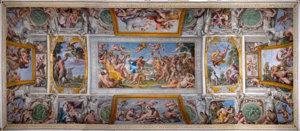 Το αποτέλεσμα, που χρειάστηκε 11 χρόνια σκληρής εργασίας (1597-1608), ήταν ένα θαύμα οπτικής ψευδαίσθησης και συμβολισμού. Η οροφή, μήκους περίπου 20 μέτρων, απεικονίζει ερωτικές ιστορίες των θεών – έναν ύμνο στην επιθυμία, την απόλαυση και το πάθος μέσα από μια σύνθεση όπου ζωγραφική, γλυπτική και αρχιτεκτονική συνυπάρχουν σε ιδανική ισορροπία.