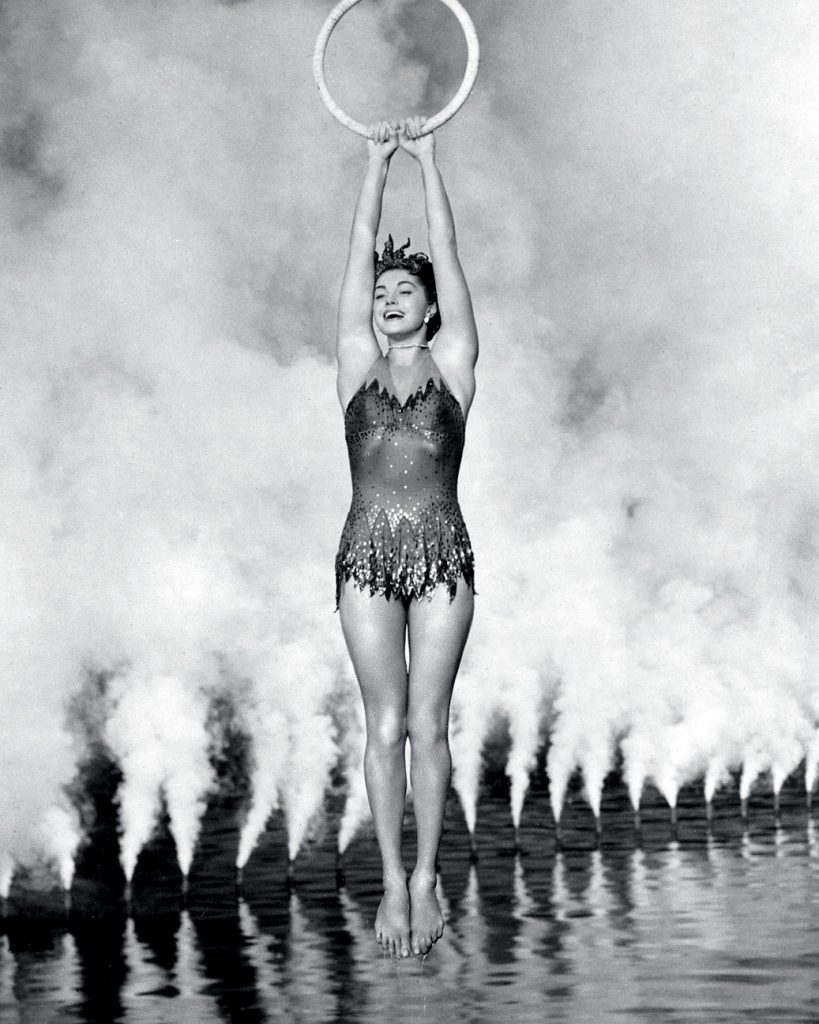 Ολα αυτά στην εναρκτήρια σκηνή της ταινίας «Η βασίλισσα των κυμάτων» (Thrill of a Romance), παραγωγής του 1945, σε μια εποχή που ο κόσμος επικοινωνούσε πολύ διαφορετικά σε σχέση με σήμερα. Και η ηθοποιός που υποδύεται την υπέροχη αυτή δασκάλα γνώριζε καλύτερα από τον καθένα τι σημαίνει να μαγνητίζει το βλέμμα των άλλων όποτε ετοιμαζόταν να κάνει μια βουτιά σε πισίνα. Γιατί χάρη σε αυτή τη μοναδική σχέση με το υγρό στοιχείο, πολύ πριν από την εποχή αυτής της ταινίας, είχε πια συνηθίσει να προκαλεί το ενδιαφέρον, εντός και εκτός κινηματογραφικών πλατό.
