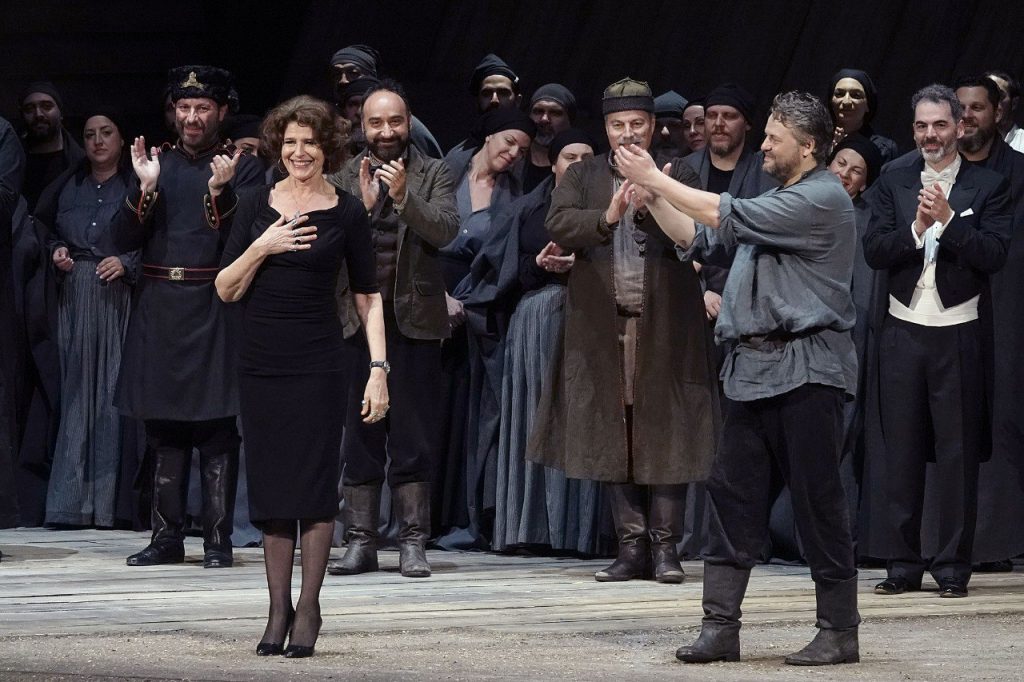 Η Φανί Αρντάν υποκλίνεται στο κοινό της Λυρικής μετά την πρεμιέρα της «Λαίδης Μακμπέθ του Μτσενσκ» το 2019.