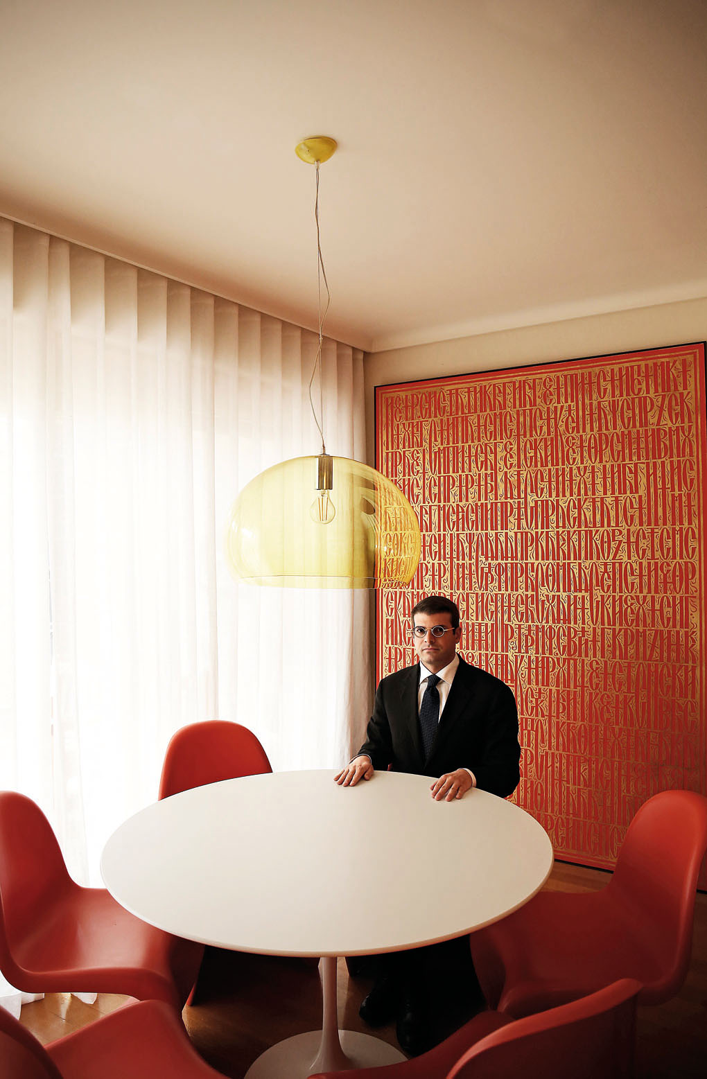 «Εκπαιδεύτηκε η ματιά μου προτού αρχίσω να χτίζω την προσωπική μου συλλογή. Για μεγάλο χρονικό διάστημα δεν αγόραζα τίποτα, μόνο έβλεπα, παρατηρούσα, διαμόρφωνα – να το πω έτσι – την προσωπική μου αισθητική. Ηταν τα χρόνια που ταξίδευα συνεχώς με τη μητέρα μου αποκλειστικά και μόνο για τέχνη. Δεν βιάστηκα να αποκτήσω το πρώτο μου έργο. Το έκανα όταν αισθάνθηκα έτοιμος να το εκτιμήσω. Οταν ήρθε αυτή η στιγμή, το εικαστικό, δηλαδή το να μου αρέσει ως ζωγραφική δουλειά ένα έργο, έπαιξε καθοριστικό ρόλο στην επιλογή του. Απαιτεί ενέργεια και θυσίες το να αγοράσεις ένα έργο, γι’ αυτό προσπαθώ να μη χάνει αξία. Τώρα αν ανεβεί η αξία του το δέχομαι με χαρά. Επίσης, δίνω βάση στην πορεία του καλλιτέχνη, στο βιογραφικό του και κυρίως στο σε ποιες γκαλερί εκθέτει και από ποιες εκπροσωπείται. Σε αυτή την εξίσωση δεν μπορεί να μη μετρήσει και το ένστικτο: είναι εκεί που βλέπεις τη δυναμική ενός έργου, την αξία του προτού αυτό την αποκτήσει. Αλλωστε το είπε πολύ ωραία ο Ανατόλ Φρανς: “Στην τέχνη και στην αγάπη το ένστικτο είναι αρκετό”. Ξέρετε, η τέχνη είναι μια παγκόσμια διάλεκτος. Δεν μπορώ να σκεφτώ κάποια ισχυρότερη πλατφόρμα κοινωνικοποίησης από την τέχνη και προσωπικά αυτή η αλληλεπίδραση με κινητοποιεί ιδιαίτερα. Μέσα σε όλα αυτά τα χρόνια έχω χτίσει υπέροχες σχέσεις με καλλιτέχνες, με γκαλερί αλλά και με άλλους συλλέκτες».
