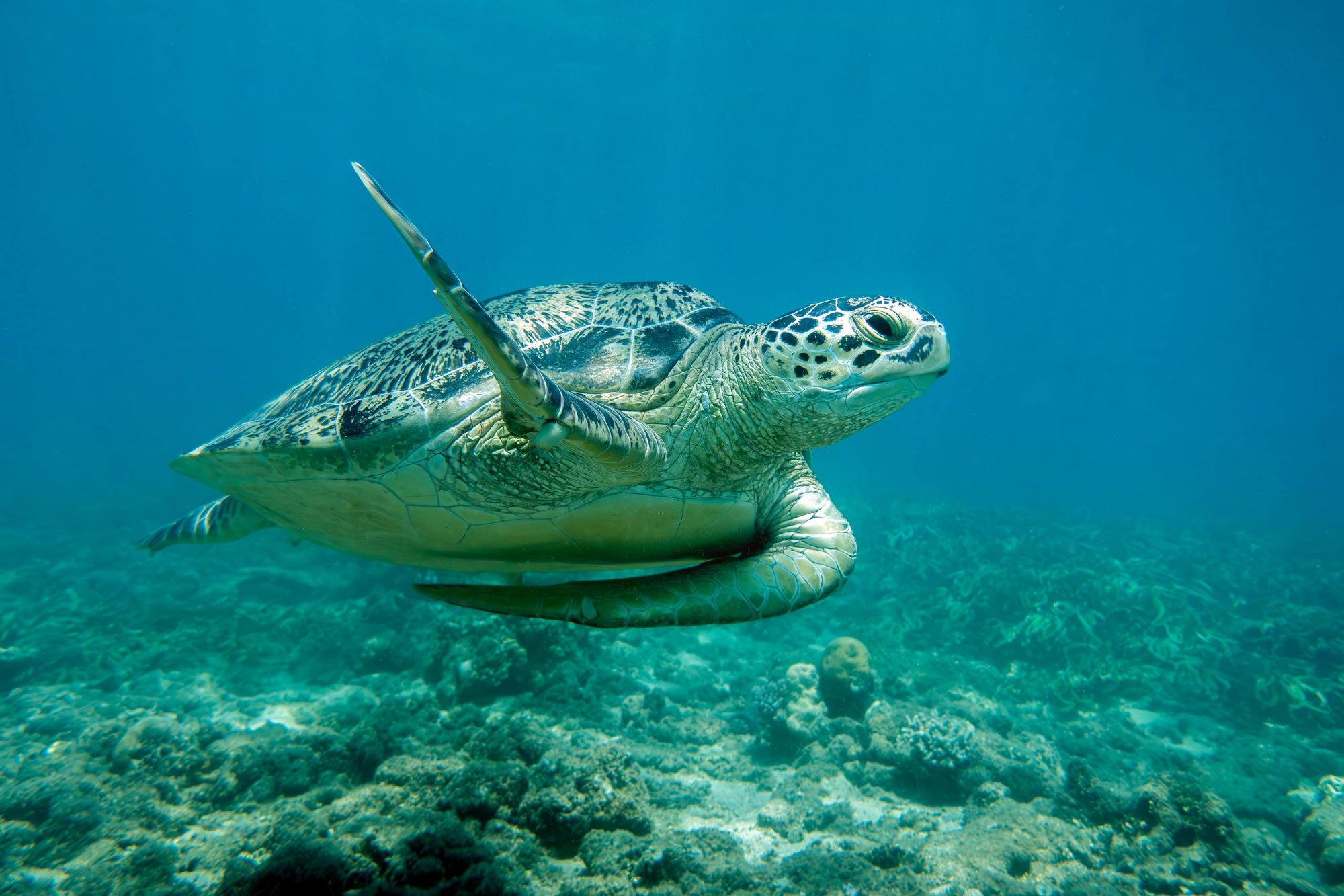 Θαλάσσια χελώνα caretta caretta, φωτογραφημένη στο νησί Σακάτια της Μαδαγασκάρης.