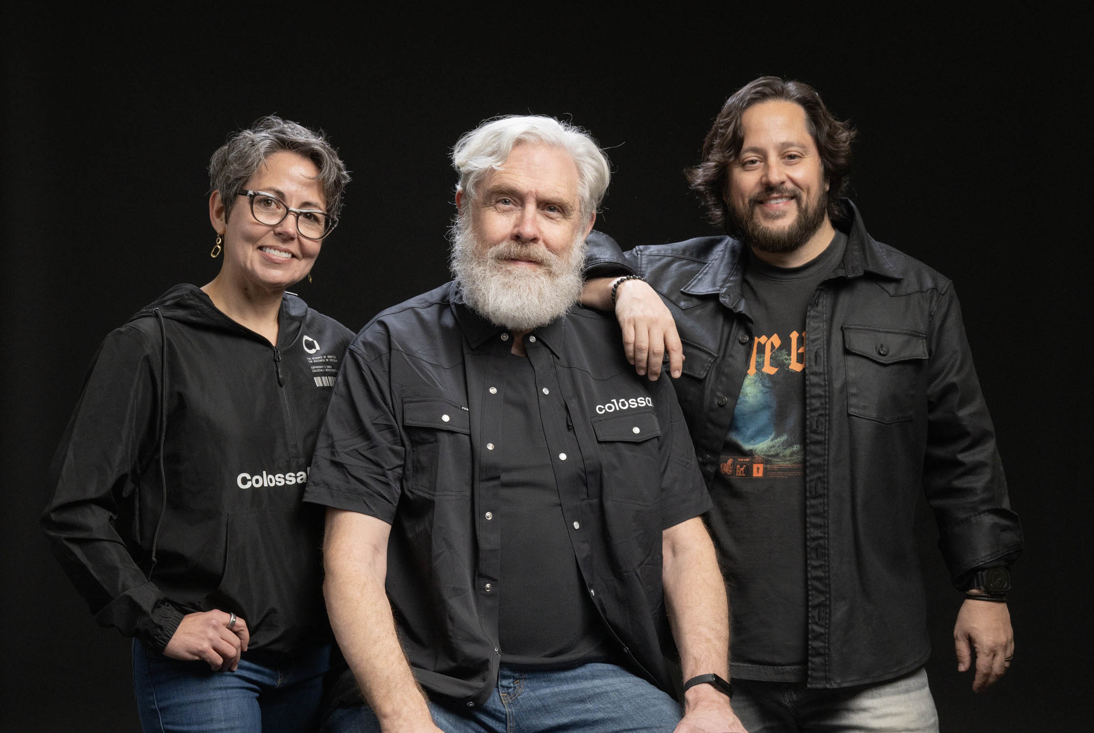 Η Μπεθ Σαπίρο, επικεφαλής του επιστημονικού τμήματος της Colossal Biosciences, και ο γενετιστής του Πανεπιστημίου Χάρβαρντ Τζορτζ Τσερτς φωτογραφίζονται με τον ιδρυτή της εταιρείας, Μπεν Λαμ. Photo Colossal Biosciences handout via Reuters