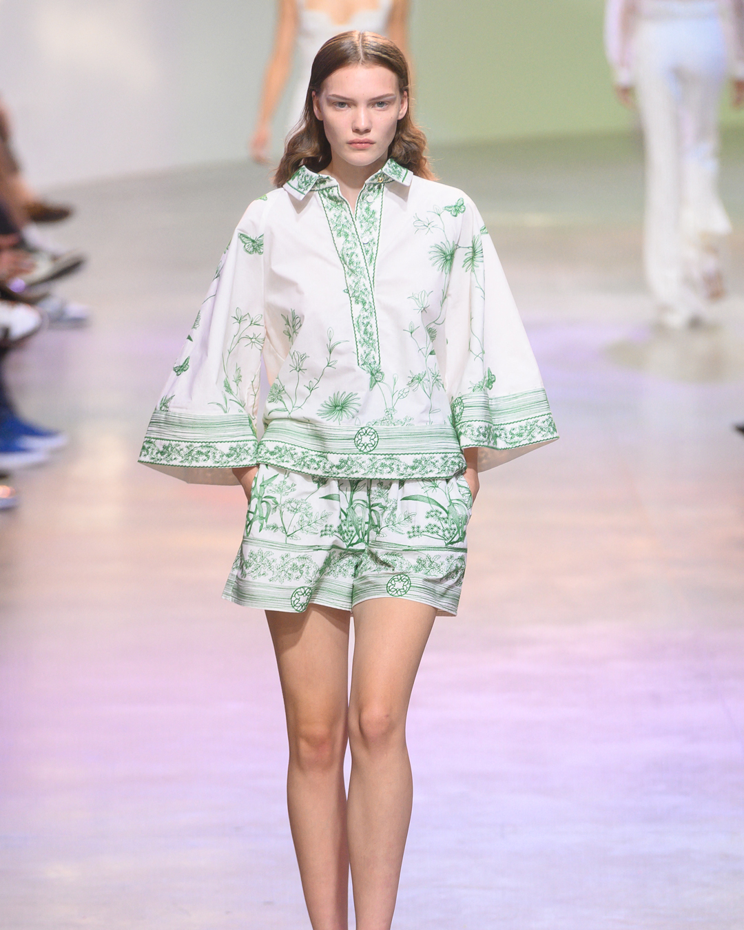 Με αυτά τα υφάσματα και τις τεχνικές ο Σαμπ δημιούργησε κομμάτια που αποτελούν τάσεις για την ερχόμενη σεζόν, όπως είναι οι μίνι φούστες, τα καυτά σορτς, τα σακάκια, τα crop tops που αφήνουν εκτεθειμένη την κοιλιά, τα ρομαντικά φλοράλ φορέματα, τα ελαφριά φούτερ και τζάκετ αλλά και τα ταγέρ σε απαλές κοραλλί και σμαραγδί αποχρώσεις που «σβήνουν» για να καταλήξουν σε καθαρό λευκό. Συνολικά 68 διαφορετικά και μοναδικά looks προτείνει ο 58χρονος σχεδιαστής, πειραματιζόμενος με νέες υφές και υφάσματα για το 2023.