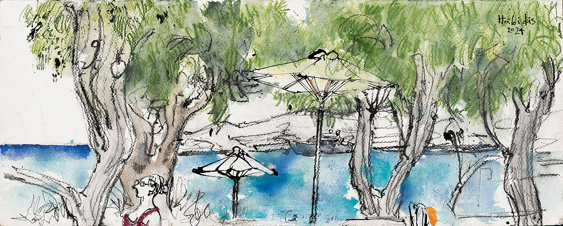 Εχω όμως ζήσει πολλές χαρές χάρη στις υδατογραφίες και είμαι ευγνώμων για όσα μου έχουν προσφέρει. Τόσο σε επίπεδο δημιουργίας όσο και σε επαγγελματικό, εμπορικό, επίπεδο. Δουλεύω πάντα “in situ” (επί τόπου) και αξιοποιώ την άνεση που έχω, αλλά και τη χαρά που βρίσκω στο σκιτσάρισμα.