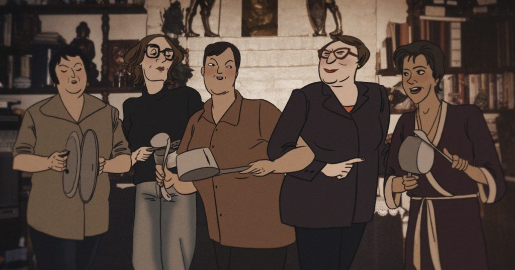 Εικόνες από το animation που περιλαμβάνεται στην ταινία: η Τσέλι με τις λεσβίες φίλες της και με τους συμπαίκτες της στο πόκερ.