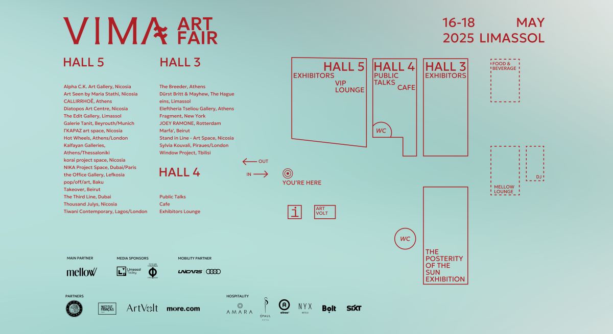 «Η Κύπρος είναι μικρή σε κλίμακα, αλλά πλούσια σε δυναμική. Η VIMA (από την ελληνική λέξη βήμα-πλατφόρμα) φιλοδοξεί να γίνει ο θεσμός που θα συνδέσει το νησί με τη διεθνή σκηνή τέχνης» δήλωσαν. Και στα Τσιφλικούδια – ανάμεσα στο παλιό και το νέο λιμάνι της Λεμεσού, εκεί όπου άλλοτε λειτουργούσε το εργοστάσιο της ΣΟΔΑΠ, μίας από τις ιστορικότερες οινοποιητικές μονάδες του νησιού – βρήκαν το ιδανικό σημείο. Μέχρι πρόσφατα υποβαθμισμένη, η περιοχή απέκτησε ζωή μέσα στα κτίρια του 1947, «ακριβώς δίπλα στη θάλασσα», όπου στήθηκε από το μηδέν μια boutique φουάρ: μικρή σε μέγεθος, αλλά με χαρακτήρα και ποιότητα. Μόλις 26 γκαλερί συμμετείχαν – δέκα από την Κύπρο, έξι από την Ελλάδα, και οι υπόλοιπες από τον Λίβανο, το Ντουμπάι, το Αζερμπαϊτζάν και τη Γεωργία –, όλες αυστηρά επιλεγμένες ύστερα από πρόσκληση και όχι μέσω open call.