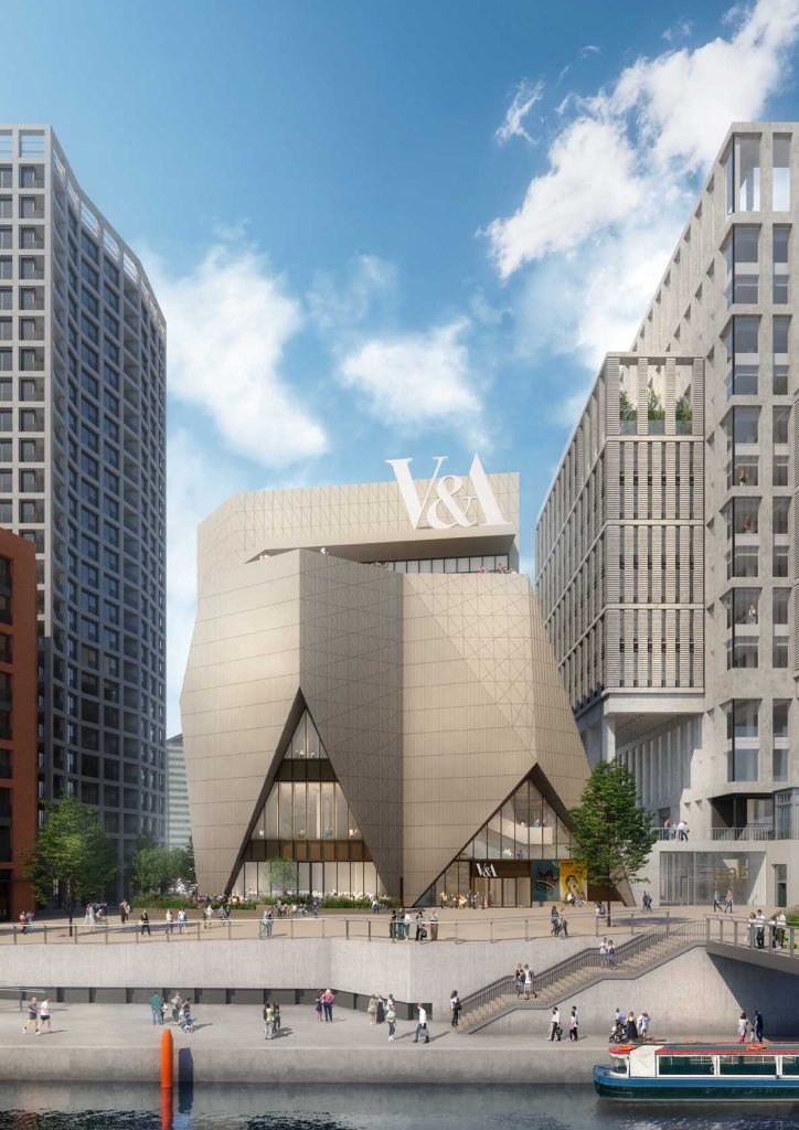 Το V&A East Museum, που ανεγείρεται στο Stratford Waterfront, το μεγάλο αστικό και πολιτιστικό έργο ανάπλασης στο Ανατολικό Λονδίνο, σηματοδοτεί µια νέα εποχή για το Victoria and Albert Museum, επεκτείνοντας την παρουσία του στην περιοχή, μετά το V&A East Storehouse. Το πενταώροφο κτίριο, με την υπογραφή του ιρλανδικού αρχιτεκτονικού γραφείου O’Donnell + Tuomey, συνδυάζει τον σύγχρονο σχεδιασμό με την ιστορία της παραγωγής και της δημιουργίας στην περιοχή.
