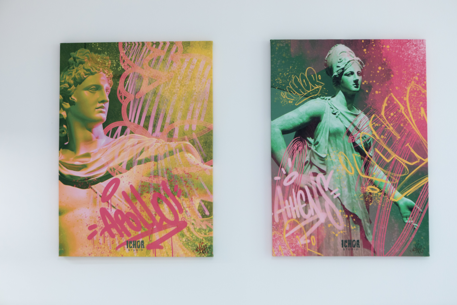 Ανάμεσα σε χρωματιστούς θεούς και ήρωες, μιλήσαμε με τους δύο καλλιτέχνες για την ιδέα που συνέλαβαν ένα πρωινό στον Παρθενώνα, για την υλοποίησή της, την πενταετή διαδρομή του Ichor Studio και κυρίως το νόημα μιας τέχνης προσιτής σε όλους, που καταφέρνει να δημιουργεί και όχι να εκβιάζει συναισθήματα.