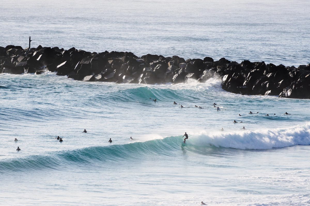 Το διαμέρισμα της φίλης που με φιλοξενούσε έβλεπε την παραλία Duranbah, γνωστή στους surfers ως Dbah. Παραδίπλα συναντάς διαδοχικά τα πιο εμβληματικά συνεχόμενα breaks του πλανήτη: το Snapper Rocks, το Rainbow Bay και το Greenmount. Στις καλές μέρες, ξεκινάς να σερφάρεις στο Snapper – ένα στενό, δυνατό και ταχύτατο point break – και μπορείς να συνεχίσεις για εκατοντάδες μέτρα, διασχίζοντας το πιο ήρεμο Rainbow Bay και φτάνοντας μέχρι το Greenmount, αν αντέξεις. Από άποψη κύματος, προσωπικά προτιμώ το πιο δυνατό και εκρηκτικό Dbah, αλλά αυτό είναι απόδειξη της μαγείας του τόπου, που προσφέρει κύματα για κάθε γούστο.