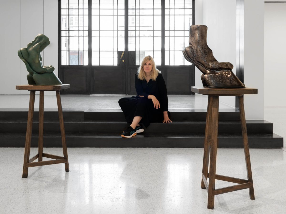 Εκεί παρουσιάζονται καινούργια έργα της Χένκε, μεγεθυσμένα πέλματα που μοιάζουν να πατούν σε μια οπλή τοποθετημένα πάνω σε ειδικά σχεδιασμένα βάθρα που αντλούν έμπνευση από τις βάσεις του ιταλού γλύπτη Μεντάρντο Ρόσο, ενός δημιουργού που η ίδια θαυμάζει ιδιαίτερα. «Πάντα έψαχνα τις κατάλληλες βάσεις για τα γλυπτά μου και τώρα πια είναι και αυτές μέρος του έργου, όπως έκαναν οι γλύπτες του 18ου αιώνα» θα πει χαρακτηριστικά. Πλάι στα γλυπτά παρουσιάζονται και σχέδια που δημιούργησε την περίοδο που ζούσε ακόμη στη Νέα Υόρκη, προτού ξεσπάσει η πανδημία και μετακομίσει στο Βερολίνο. Καταγράφουν, όπως θα εξηγήσει, τη σωματική και ψυχική περιπλάνησή της στην πόλη, και ας μην το μαρτυρά η πρώτη ματιά πάνω τους.