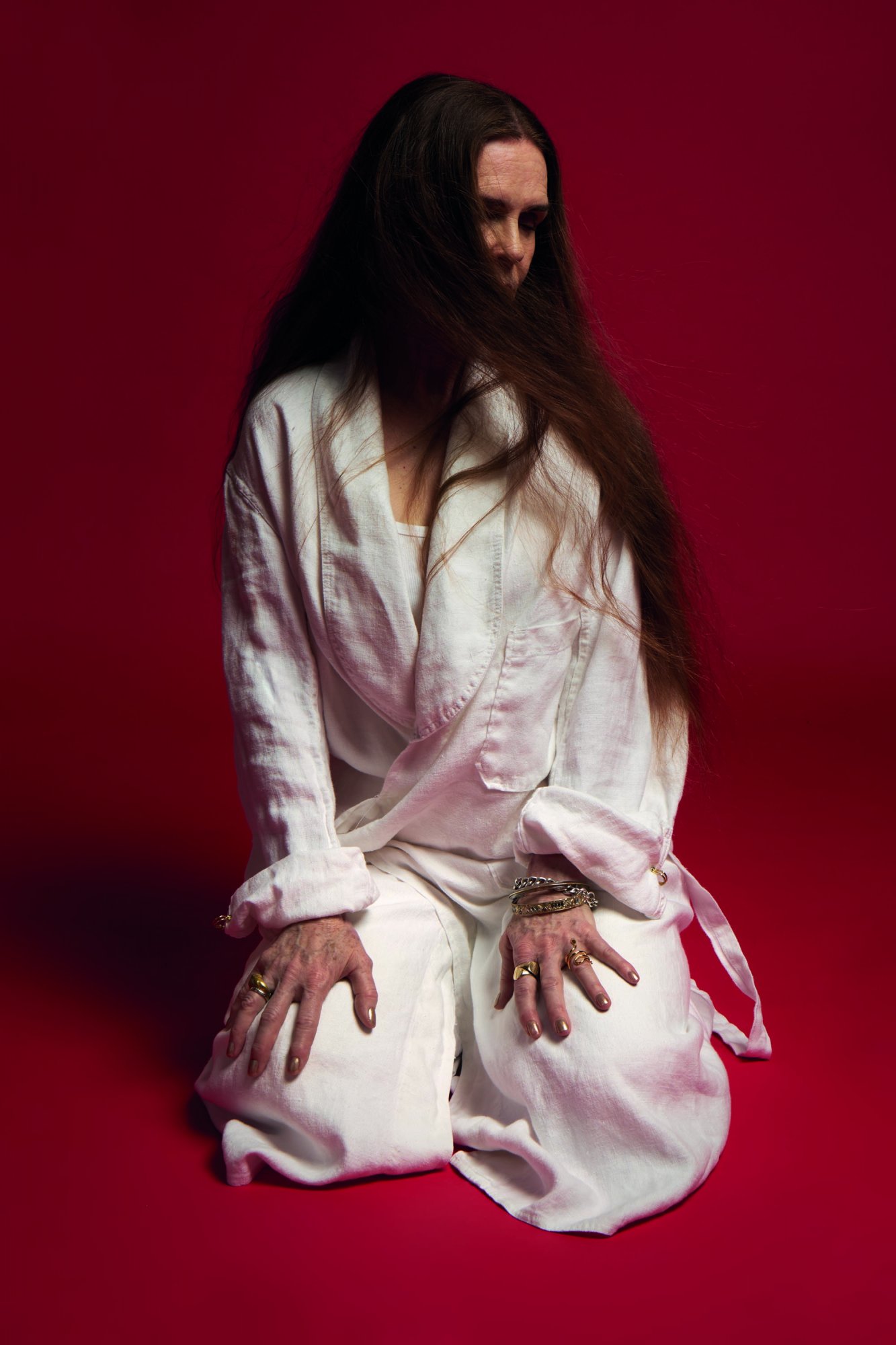 Μούσα του Μόρισεϊ, όπως και προσωπική του φωτογράφος τη δεκαετία του ’90, φίλη του διδύμου των Γκίλμπερτ και Τζορτζ, μαζί με τους οποίους έχει επισκεφθεί την Ελλάδα στο παρελθόν, ήρθε στη χώρα μας με το ένδυμα της εικαστικού και συγκεκριμένα της περφόρμερ, ύστερα από άλλη μια πρόσκληση του PCAI (Polygreen Culture & Art Initiative) και της καλλιτεχνικής του διευθύντριας Κίκας Κυριακάκου (είχε προηγηθεί η συμμετοχή της στην έκθεση «Sheltered Gardens» στον Βοτανικό Κήπο Διομήδους και το «παρών» που έδωσε στην παρουσίαση της ομώνυμης έκδοσης στο ΕΜΣΤ μέσα στο 2024, όπως και η παρουσία της στο καλλιτεχνικό πρόγραμμα φιλοξενίας του PCAI σε Αθήνα και Δελφούς).