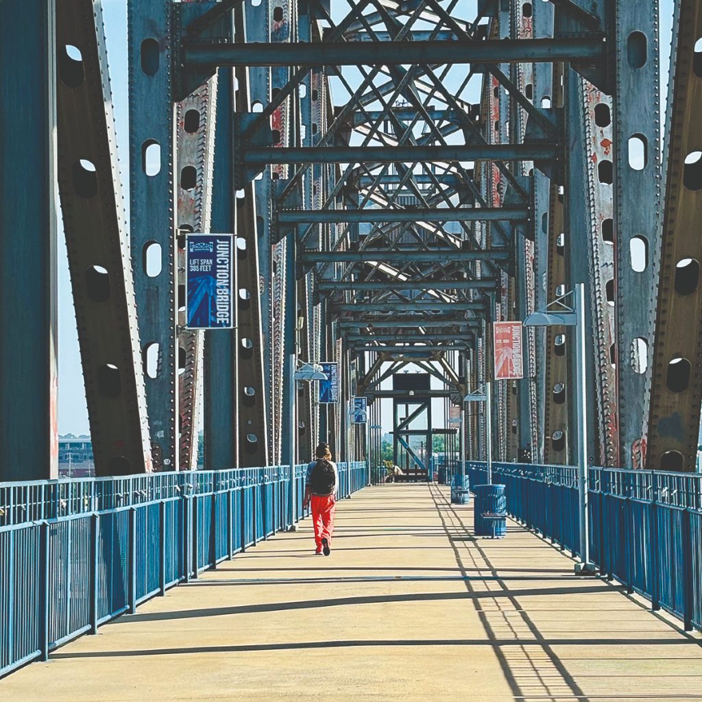 Επιστρέφουμε στην πόλη ενώ πέφτει η νύχτα. Ο ποταμός αντανακλά τα πρώτα φώτα σαν να θέλει να σε γοητεύσει και να σε κρατήσει λίγο παραπάνω. Τα χρώματα του ηλιοβασιλέματος είναι μαγικά στην παλιά γέφυρα πίσω από την Προεδρική Βιβλιοθήκη Κλίντον. Μια παρέα απολαμβάνει τη στιγμή τρώγοντας φρεσκοψημένα ντόνατς και ακούγοντας δυνατά μουσική από ένα φορητό ηχείο. Η μυρωδιά της καμένης ζάχαρης μπερδεύεται με τη βαριά, υγρή οσμή του ποταμού που κυλάει και των καλαμιών και των βούρλων που δακρύζουν γέρνοντας πάνω από το νερό.