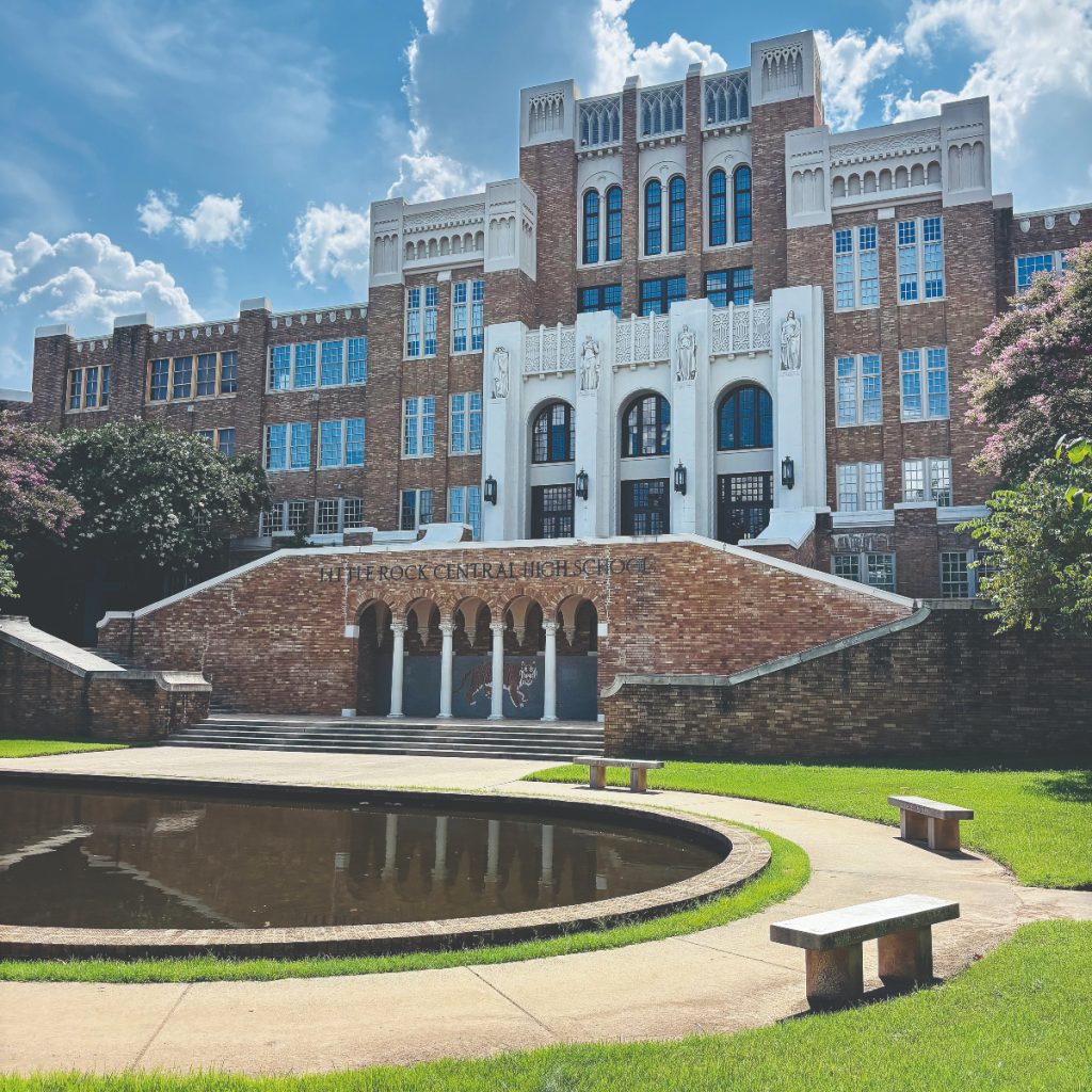 Συνεχίζουμε τις βόλτες μας στους φαρδείς δρόμους με τα χαμηλά κυρίως κτίρια – το Λιτλ Ροκ είναι μια μικρή επαρχιακή πόλη με ειδυλλιακές γειτονιές και πολύ λίγους ουρανοξύστες στο κέντρο της. Φθάνουμε σε ένα από τα πιο φορτισμένα σημεία της αμερικανικής Ιστορίας, στο Little Rock Central High School National Historic Site. Εδώ, το 1957, εννέα μαύροι μαθητές και μαθήτριες – οι περίφημοι «Little Rock Nine» – μπήκαν για πρώτη φορά σε σχολείο που έως τότε φιλοξενούσε αποκλειστικά λευκούς μαθητές, αψηφώντας τον ρατσισμό και τις απειλές.