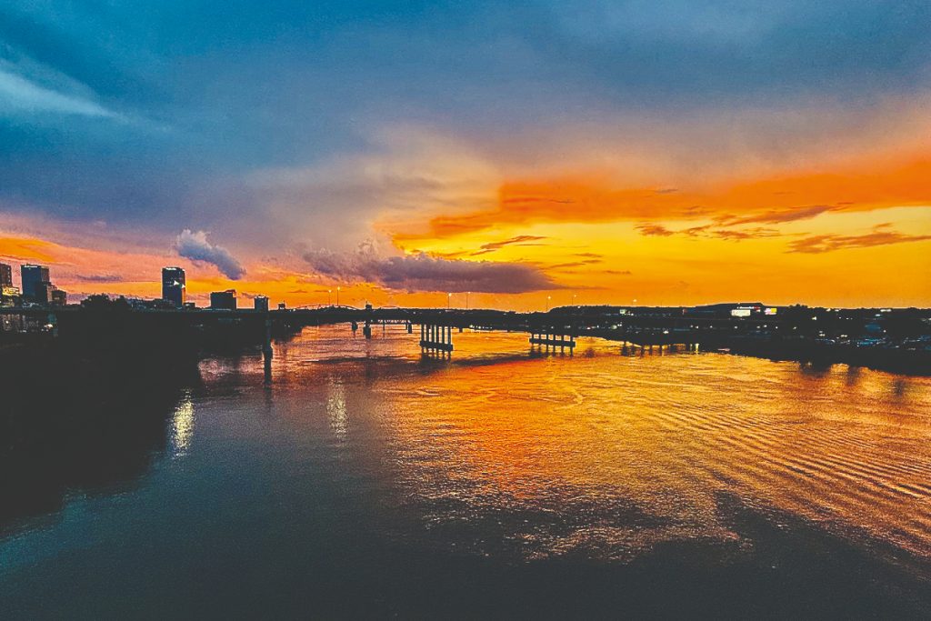 Σιγά-σιγά, όσο ο ήλιος ανεβαίνει, κάνουν την εμφάνισή τους οι πρώτοι ποδηλάτες και πεζοπόροι – λίγοι, ελάχιστοι, μη φανταστείτε πλήθη, ο νωχελικός Νότος μάλλον δεν περιλαμβάνει στην κουλτούρα του τους φυσιολατρικούς περιπάτους. Φθάνουμε κοντά στην Big Dam Bridge, τη μεγαλύτερη πεζογέφυρα της Βόρειας Αμερικής, που ενώνει τις δύο όχθες. Το Riverfront Park απλώνεται μπροστά μας σαν καταπράσινη όαση, με γλυπτά διάσπαρτα ανάμεσα στα δέντρα, ένα υπαίθριο θέατρο, μικρές λίμνες και σιντριβάνια. Μια πόλη χτισμένη μέσα στη φύση!