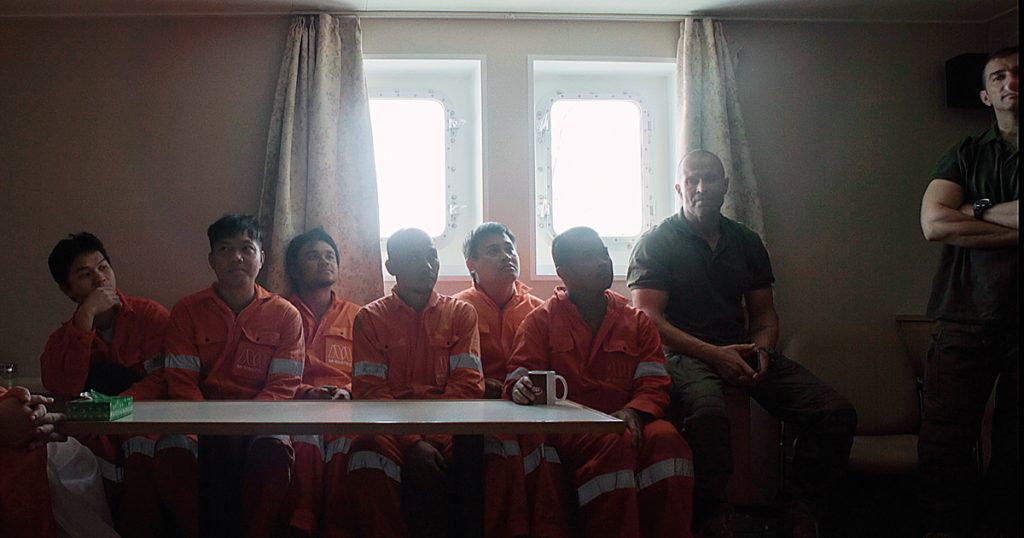 Tρεις άνδρες λοιπόν περνούν κυρίως μπροστά από την κάμερά του. Πρώτος ο 18χρονος Γιώργος που ο φακός τον συναντά στο Γκάλε της Σρι Λάνκα, μία ημέρα προτού επιβιβαστεί στο πλοίο, να ετοιμάζεται για το πρώτο του ταξίδι ως μισθοφόρος. Δεύτερος ο 30χρονος Κώστας, που τον παρακολουθούμε εν πλω, και τρίτος ο Βίκτωρ, ένας άνδρας κοντά στα 50, που τον βλέπουμε στη στεριά να αποφασίζει να εγκαταλείψει τα πλοία αναζητώντας πλέον θέση στα γραφεία μιας ναυτιλιακής εταιρείας, εκπαιδεύοντας παράλληλα νέους μισθοφόρους και ψάχνοντας να αναπληρώσει τις στιγμές που έχασε με την οικογένειά του.