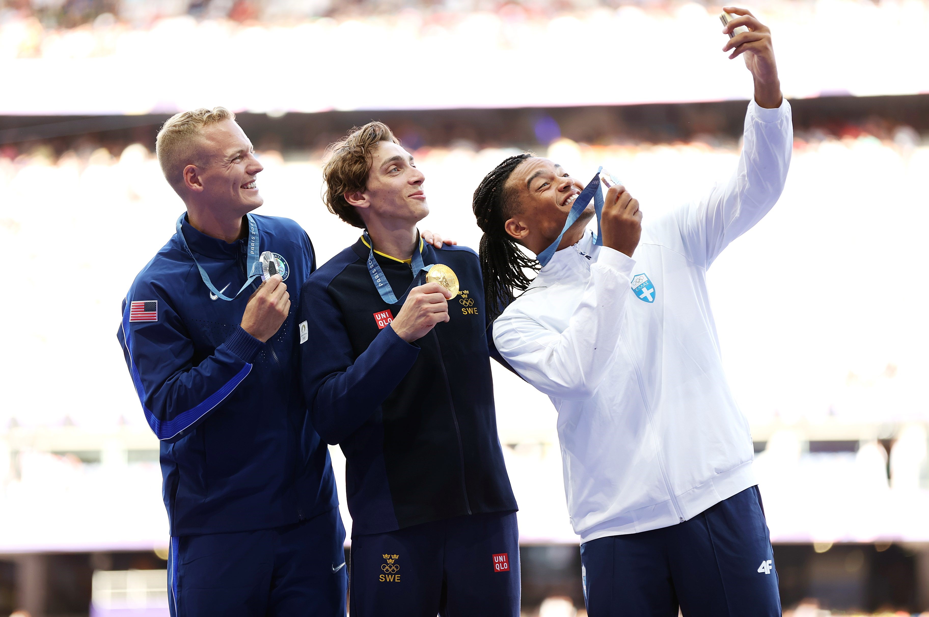 Κέντρικς, Ντουπλάντις και Καραλής στο βάθρο των Ολυμπιακών Αγώνων του Παρισιού.