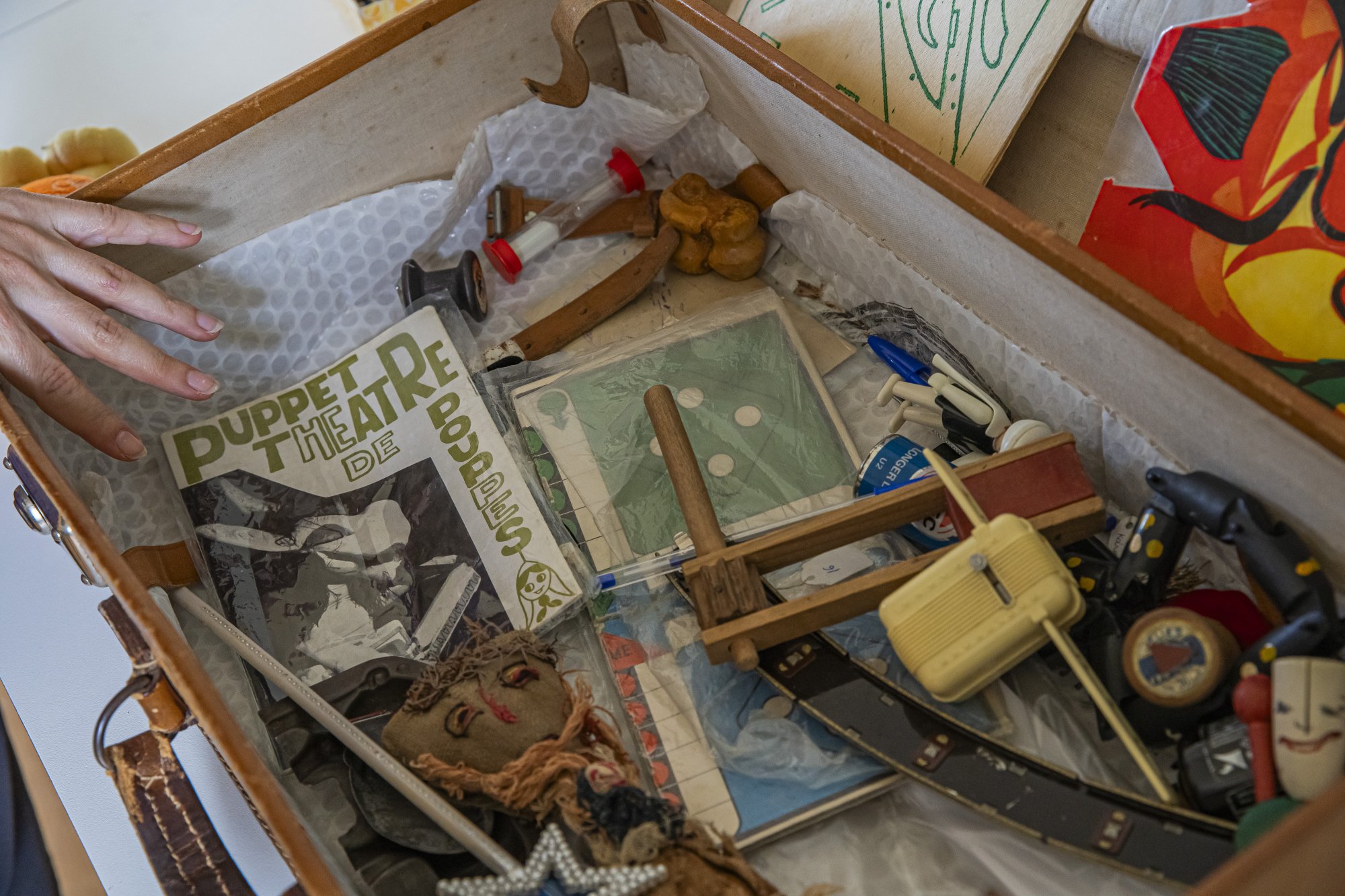 Η βαλίτσα με τα αντικείμενα που χρησιμοποιούνται σε εκπαιδευτικά προγράμματα και είναι στη διάθεση των παιδιών να τα αγγίξουν, να τα επεξεργαστούν και να τα αναζητήσουν στις ενότητες που αντιστοιχούν στο μουσείο. @Ανδρέας Σιμόπουλος