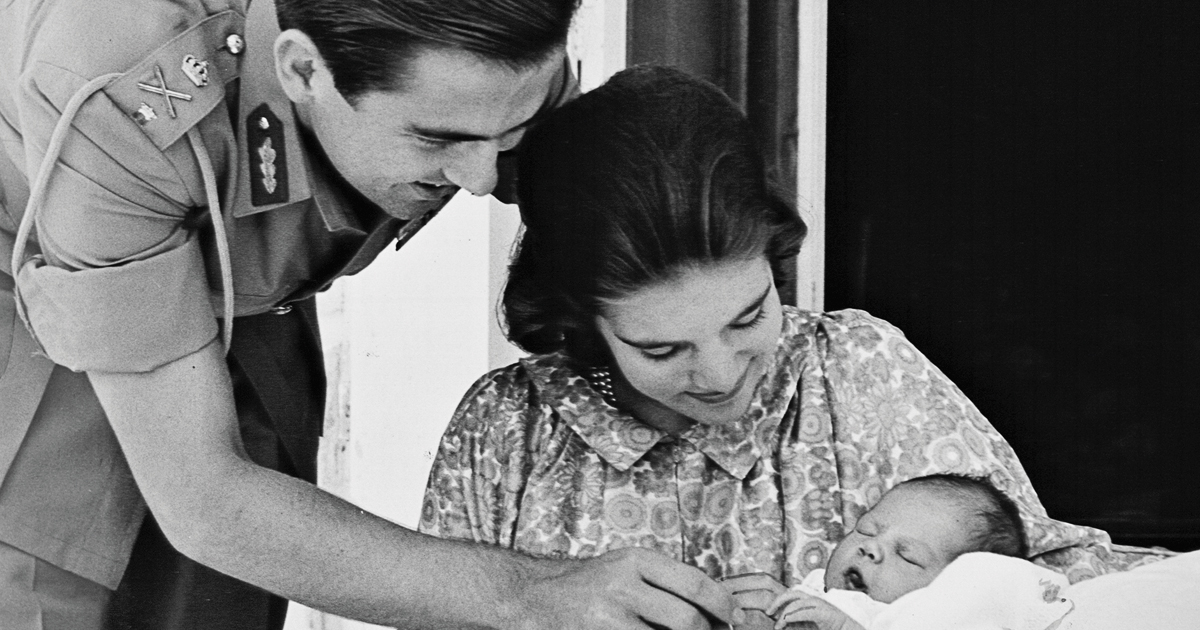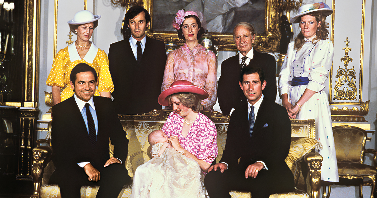 Κάρολος και Νταϊάνα την ημέρα της βάπτισης του πρωτότοκου γιου τους, Γούιλιαμ, τον Αύγουστο του 1982, με τους έξι αναδόχους του, μεταξύ των οποίων και ο τέως βασιλιάς Κωνσταντίνος.