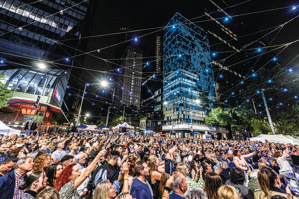 Η κοινότητα διοργανώνει δύο μεγάλα φεστιβάλ ετησίως. Το Φεστιβάλ Αντίποδες, που πραγματοποιείται εδώ και σχεδόν 40 χρόνια, προσελκύει πάνω από 100.000 επισκέπτες σε ένα Σαββατοκύριακο: «Κλείνουμε τους δρόμους, φέρνουμε καλλιτέχνες από την Ελλάδα – έχει έρθει και ο Νταλάρας, και η Χάρις Αλεξίου, και η Πρωτοψάλτη. Υπάρχουν περίπτερα με φαγητό – λουκουμάδες, σουβλάκια –, αδελφότητες, σχολεία, ελληνικά προϊόντα. Ερχονται και χορευτικά συγκροτήματα από άλλες Πολιτείες. Περνούν και Ελληνες και μη Ελληνες, παίρνουν μια γεύση από τον ελληνικό πολιτισμό». Το δεύτερο είναι το Φεστιβάλ Ελληνικού Κινηματογράφου κάθε Οκτώβριο, με περίπου 10.000 θεατές.