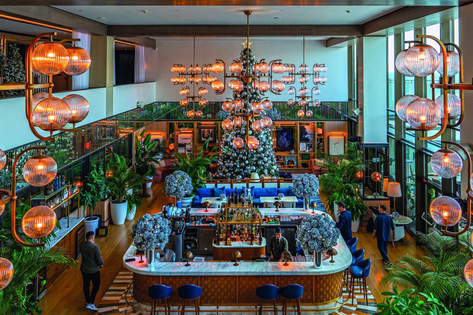 Οι γιορτινά στολισμένοι χώροι του Avra Bar στο Four Seasons Astir Palace Hotel Athens. Φωτογραφία Ανδρέας Σιμόπουλος