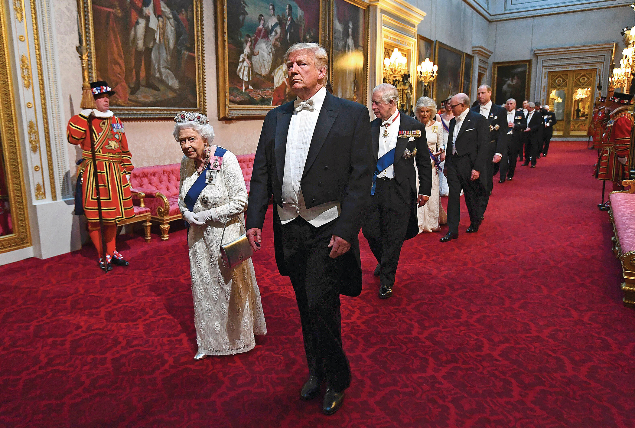 Ποιος µπορεί να ξεχάσει την εικόνα του Ντόναλντ Τραµπ στη διάρκεια της πρώτης επίσηµης επίσκεψής του στο Ηνωµένο Βασίλειο το 2019 να περπατά µπροστά από τη βασίλισσα Ελισάβετ Β’, αναγκάζοντάς τη να κάνει ελιγµούς για να τον αποφύγει (το επανέλαβε µε τον Κάρολο Γ’ το 2025);