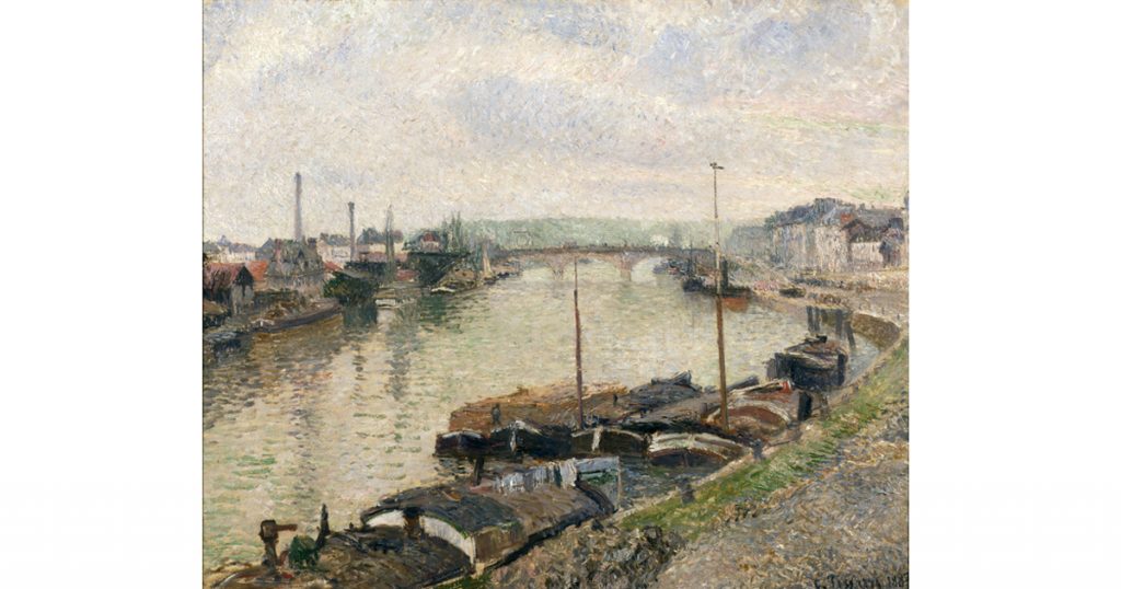 «Le pont de pierre et les barges à Rouen» (1883), του Καμίλ Πισαρό.