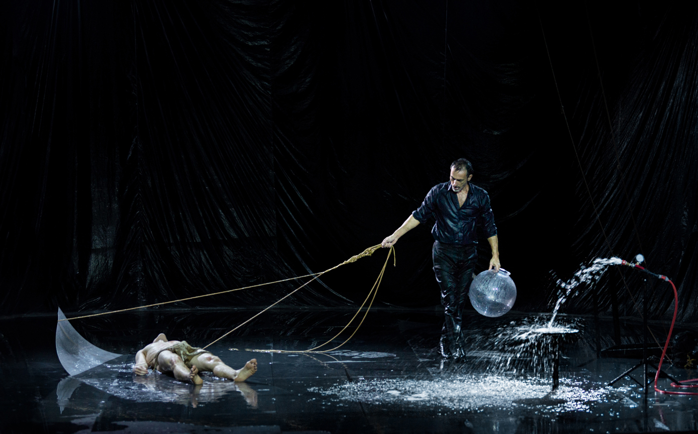 «Πάντα υπάρχουν ιδέες και θέματα τα οποία αιωρούνται στον χρόνο μέχρι να βρουν το έργο στο οποίο θα προσγειωθούν και θα γονιμοποιηθούν. Οταν είχα ξεκινήσει την έρευνα για τον “Μεγάλο Δαμαστή” ένα από τα βασικά πράγματα που με απασχολούσαν ήταν το σύστημα που ποτίζει τα μεγάλα χωράφια. Είχα δει πώς ο ήλιος φωτίζει αυτόν τον πίδακα του νερού και πάντα τον φανταζόμουν στη σκηνή. Οταν μου πρότειναν από το Τορίνο και το Ρέτζιο Εμίλια να κάνω ένα έργο, θυμήθηκα αυτή την παλιά ιδέα. Δοκιμάζοντάς τη μαζί με τον Σούκα δημιουργήθηκε ξαφνικά μια μυθοπλασία η οποία άντεχε να οικοδομήσει μια δραματουργία. Αρχίσαμε και παίζουμε με τα υλικά που είχαμε στη διάθεσή μας και είδαμε μπροστά μας κάτι να ξεδιπλώνεται. Ηταν λοιπόν από τις ιδέες που έχω στα ράφια, κυριολεκτικά και μεταφορικά. Γιατί πρέπει να πω ότι εδώ και πέντε χρόνια μού έχει προσφέρει το Μέγαρο Μουσικής μια υπόγεια αποθήκη, την οποία μετέτρεψα σε ένα αντισυμβατικό εργαστήριο για να κλείνομαι με τους χορευτές και τους τεχνικούς μου και να δουλεύω. Είμαι ευγνώμων γι’ αυτό και θα ήταν πολύ ενδιαφέρον αν κάθε οργανισμός, ιδιωτικός ή κρατικός, προσφέρει αντίστοιχα μια περιουσία του που δεν χρησιμοποιείται για να την αξιοποιήσει ως εργαστήριο κάποιος καλλιτέχνης».