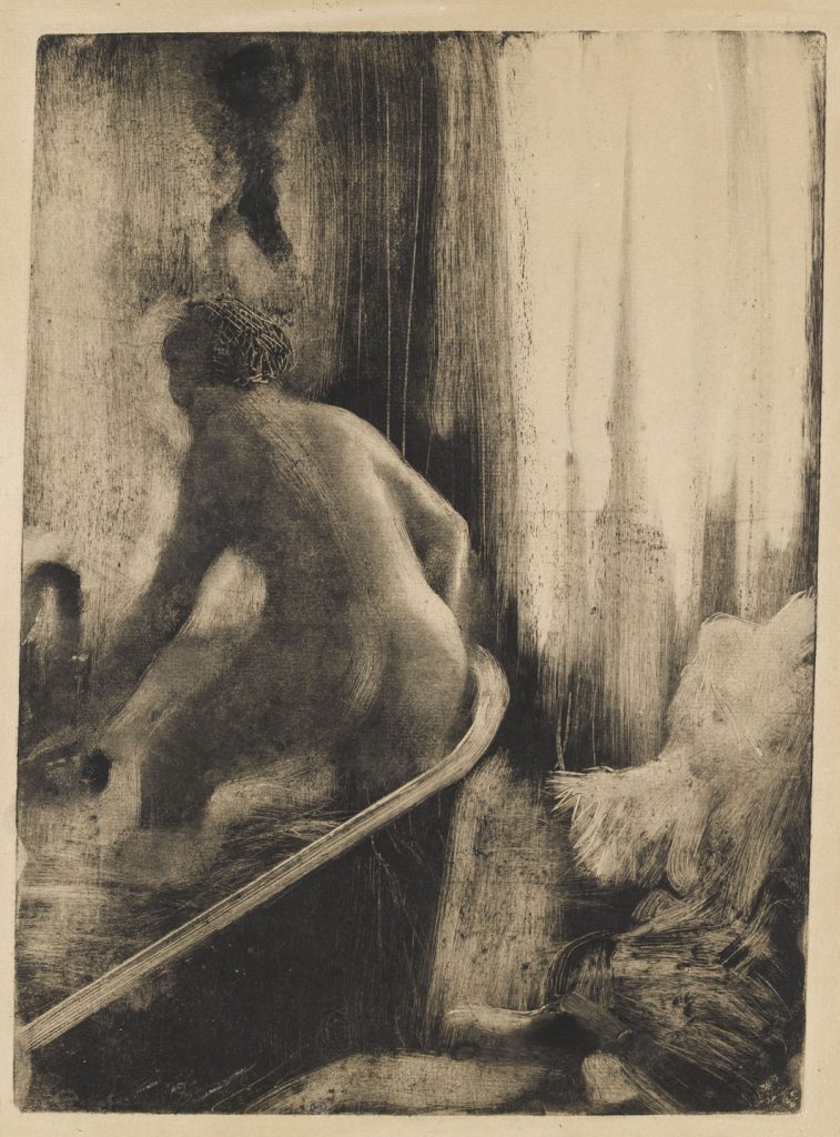 Η έκθεση «Degas en noir et blanc» (έως τις 3 Σεπτεμβρίου) στην Εθνική Βιβλιοθήκη της Γαλλίας (Bibliothèque nationale de France, BnF) στο Παρίσι αναδεικνύει αυτή τη «μουντή» δημιουργική πτυχή του καλλιτέχνη η οποία αξιοποιήθηκε για να συνδράμει στην εξέλιξη των θεματικών προβληματισμών του. Γιατί βέβαια ο κόσμος του χορού είναι και πάλι παρών και στα χαρακτικά του έργα, στιγμιότυπα της «σύγχρονης ζωής» της εποχής του 19ου αιώνα στην Οπερα του Παρισιού ή στα café της πόλης, αλλά και στην ιδιωτικότητα αστικών εσωτερικών χώρων ή και οίκων ανοχής, με τις γυναίκες και τα τελετουργικά μπάνιου και καλλωπισμού τους να βρίσκονται στο επίκεντρο των κάδρων του.