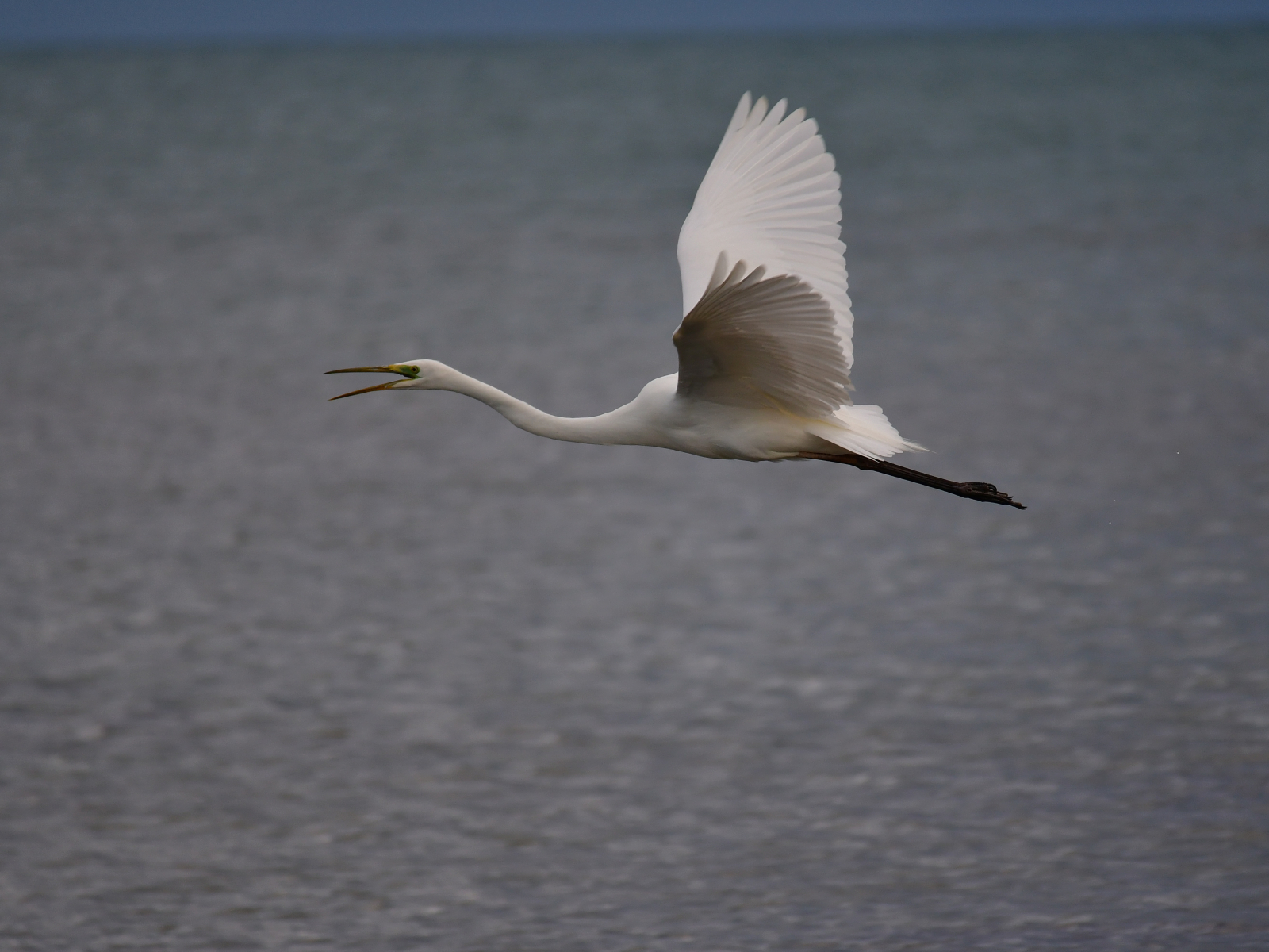 Σε πείσμα των καιρών, ένας αριστοκρατικός αργυροτσικνιάς πραγματοποιεί την αργή και συνάμα κομψή πτήση του. Οι καφέ λαγγόνες, ως άλλες δεινές παρατηρήτριες, θαυμάζουν το όμορφο πέταγμα και τη μεγαλοπρέπειά του.