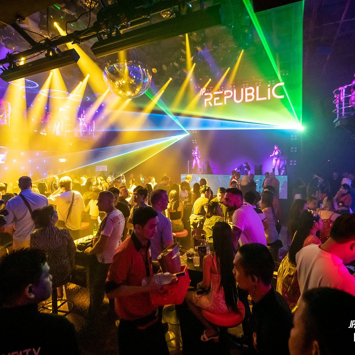 Ακριβώς δίπλα στη θρυλική Walking Street, την καρδιά της νυχτερινής ζωής της Πάταγια, το Republic Club έχει καθιερωθεί ως ο απόλυτος προορισμός για τους λάτρεις της έντονης, χωρίς όρια διασκέδασης στην Ταϊλάνδη. Με μια θέση στην έγκριτη λίστα του «DJ Mag» με τα καλύτερα κλαμπ παγκοσμίως, το Republic δικαιώνει τη φήμη του κάθε βράδυ. Διώροφο, μεγαλοπρεπές και πλήρως εξοπλισμένο με τελευταίας τεχνολογίας ηχοσύστημα και φωτιστικά installations, το club συνδυάζει την εντυπωσιακή αισθητική με το καθηλωτικό party experience.