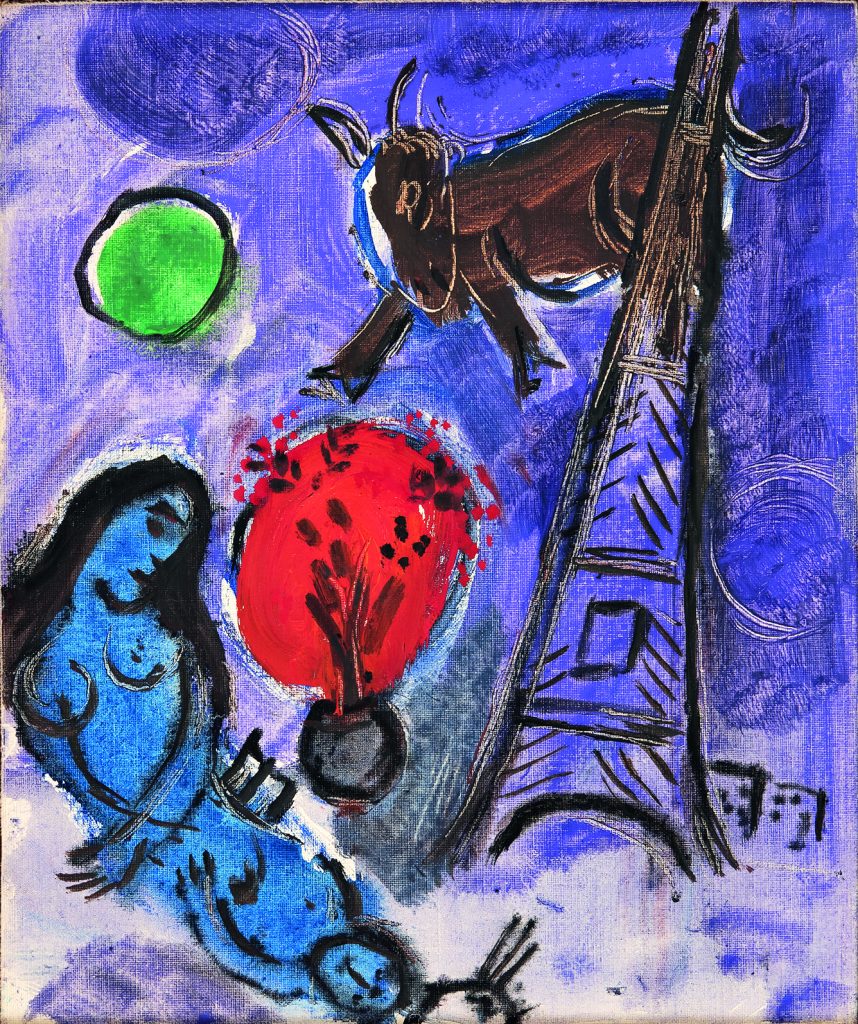 Διότι ο Σαγκάλ έζησε τα μεγάλα, ταραχώδη δρώμενα του 20ού αιώνα σε μια πορεία όπου οι πόλεμοι, οι επαναστάσεις και οι εξορίες δεν έσβησαν την καλλιτεχνική του φλόγα, αλλά την έκαναν εντονότερη. Το 1911 εγκαταλείπει τη Ρωσία για το Παρίσι, το κέντρο του μοντερνισμού. Εκεί, μέσα στον παλμό της Μονμάρτρης, συναντά μια Ευρώπη που αλλάζει. Δεν εντάσσεται πουθενά, ούτε στον κυβισμό ούτε σε κάποια ομάδα. Η δική του τέχνη είναι ένα δικό του κράμα: ποίηση, χρώμα, μνήμη. Ο Αντρέ Μπρετόν θα πει χρόνια αργότερα ότι ο Σαγκάλ ήταν εκείνος που επέτρεψε στη μεταφορά να εισβάλει στη σύγχρονη ζωγραφική, ότι ήταν ο «νονός» ενός σουρεαλισμού. Ωστόσο, το 1914, ένας γάμος τον φέρνει πίσω στο Βίτεμπσκ και ο Α’ Παγκόσμιος Πόλεμος τον κρατά εκεί. Ο Σαγκάλ και η Μπέλα, η αχώριστη συντροφιά και μούσα του, μετακινούνται στην Αγία Πετρούπολη και βρίσκονται ξαφνικά αντιμέτωποι με τις Ρωσικές Επαναστάσεις. Για ένα σύντομο διάστημα η πρωτοπορία αποκτά επίσημη υπόσταση, ο Σαγκάλ καλείται μάλιστα να ιδρύσει σχολή τέχνης στην πατρίδα του. Γρήγορα όμως το νέο καθεστώς αποφασίζει τι είναι «ορθή επαναστατική τέχνη» και ο Σαγκάλ, με την ονειρική και πνευματώδη ζωγραφική του, δεν χωρά στα στενά αυτά όρια. Αποχωρεί από τη σχολή και αντιλαμβάνεται ότι δεν έχει πια θέση στη Ρωσία.