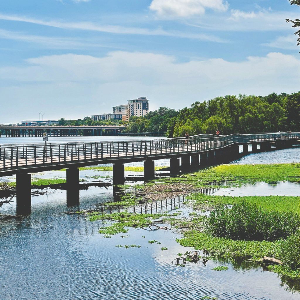 Η διαμορφωμένη διαδρομή ξεπερνά τα 16 χλμ. Απέναντι, οι ουρανοξύστες μοιάζουν να φυτρώνουν μέσα από το πράσινο. Η φύση μέσα στο οικονομικό κέντρο της πόλης! Γύρω μας, απρόσμενη ομορφιά και δεκάδες άνδρες και γυναίκες όλων των ηλικιών που κάνουν τον πρωινό περίπατό τους ή τζόγκινγκ, ποδήλατο, ακόμη και καγιάκ, λίγο πριν ξεκινήσουν για την εργασία τους ή για τις δουλειές της ημέρας.